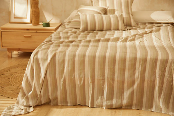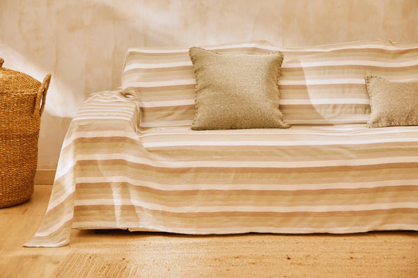 Funda de sofá de algodón a rayas en tono piedra Sorento