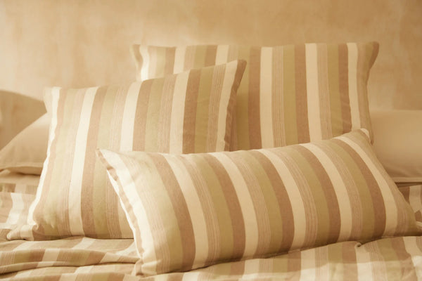 Funda de cojín cuadrada a rayas beige con botones Sorento