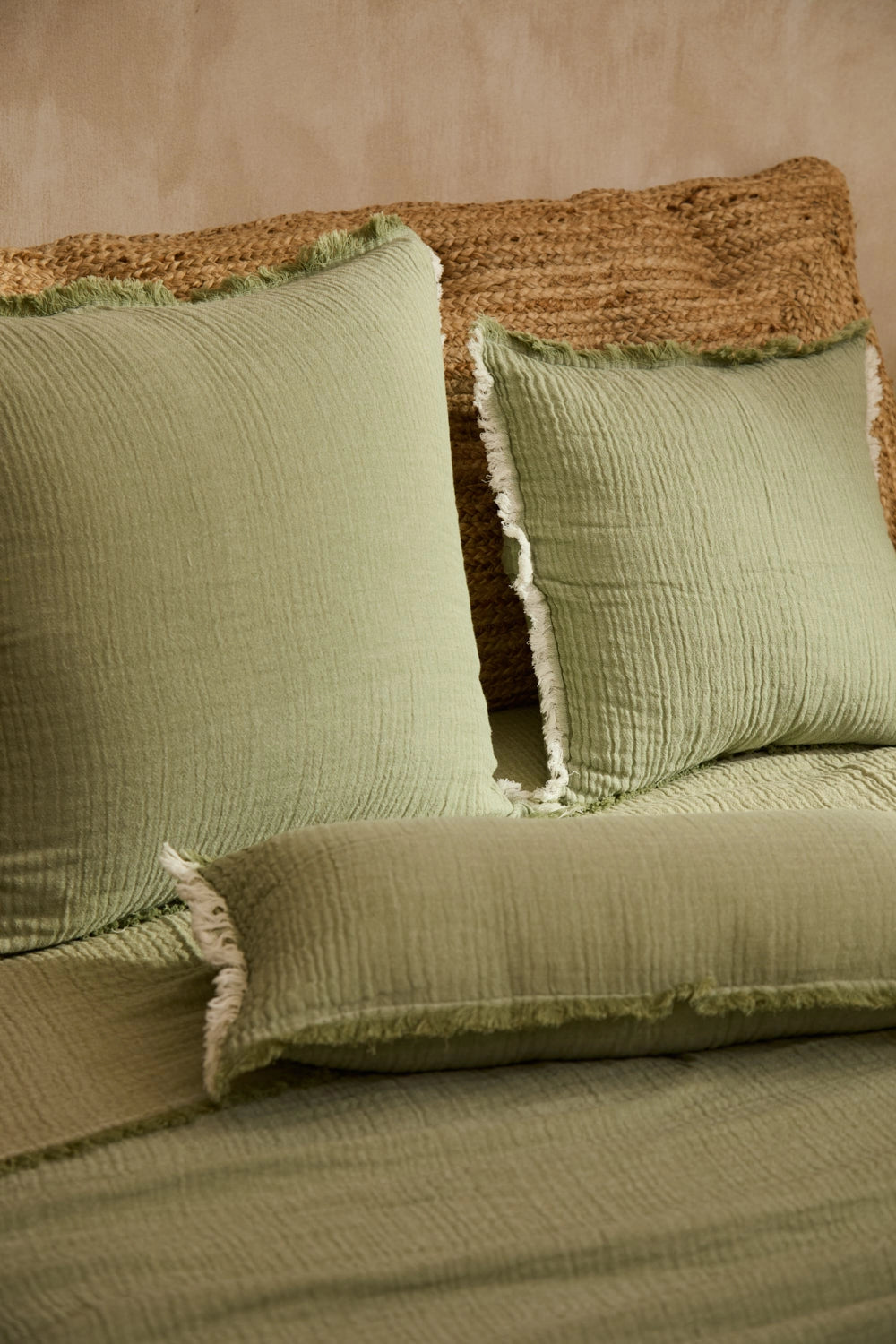Layer green cotton muslin rectangular cushion cover