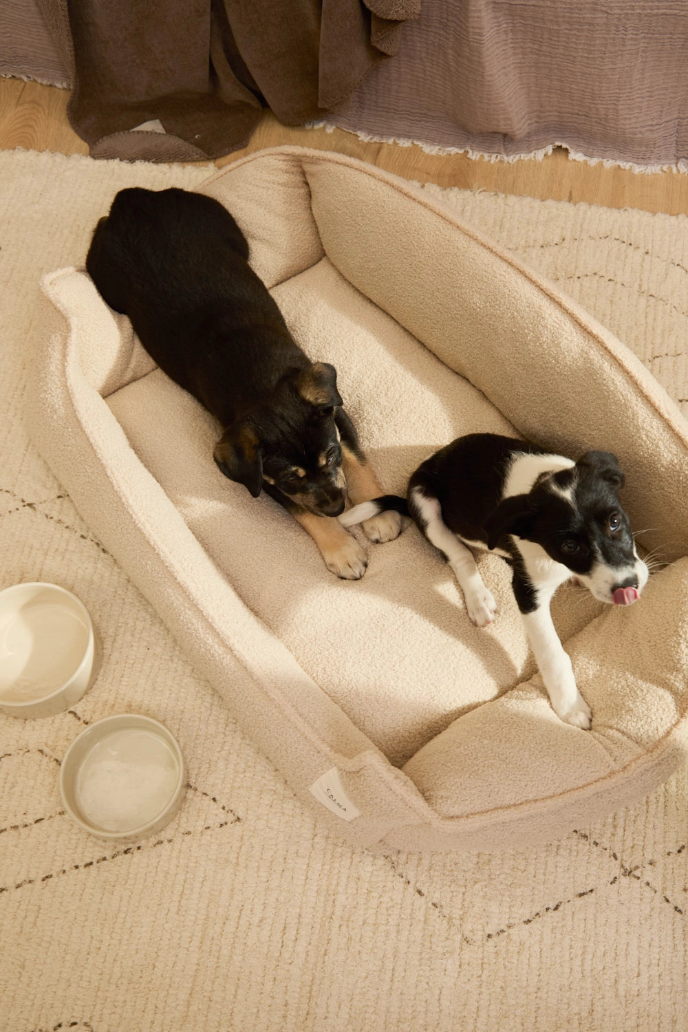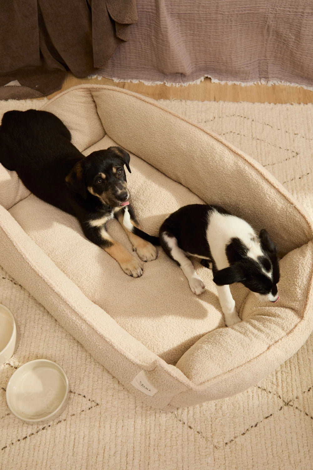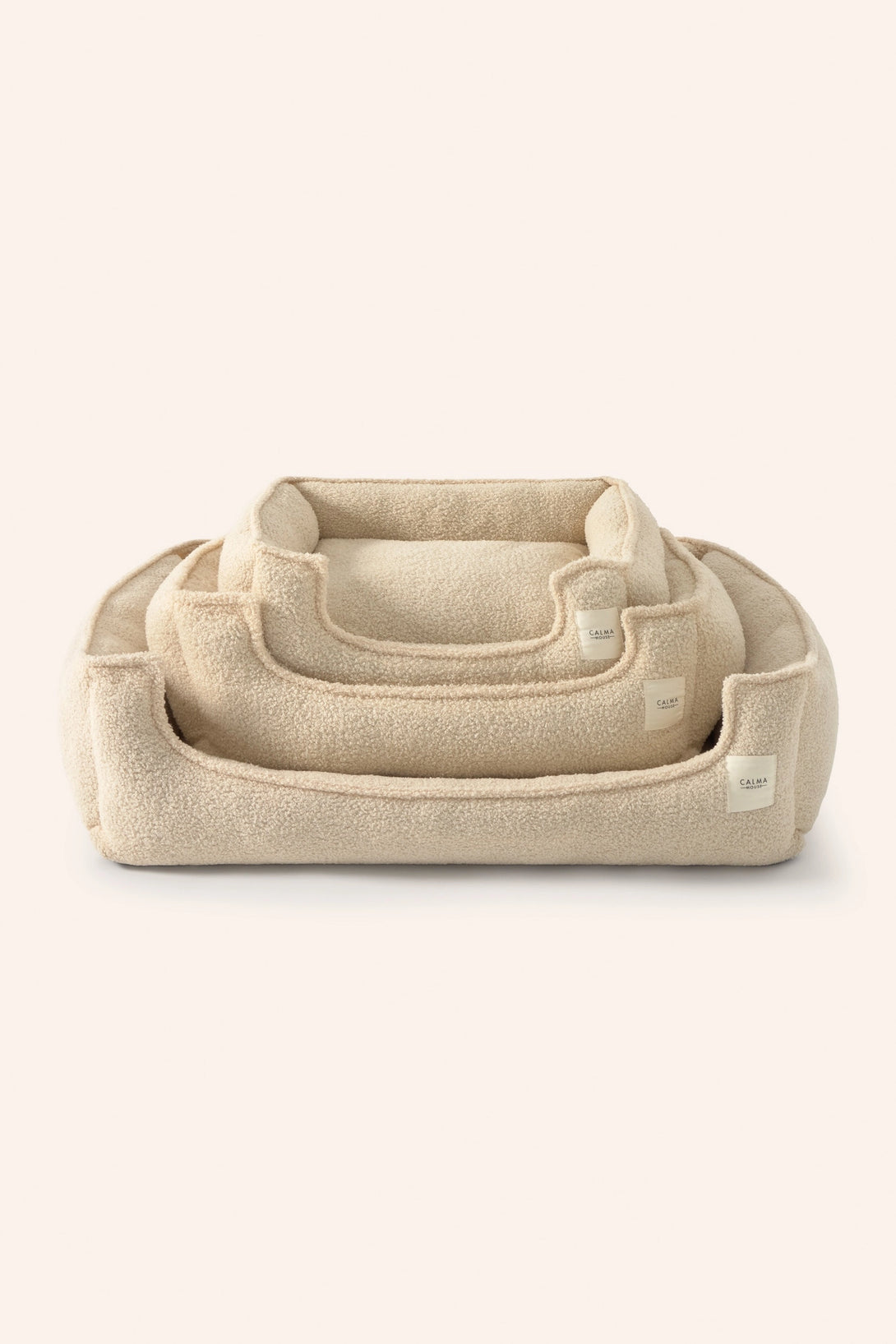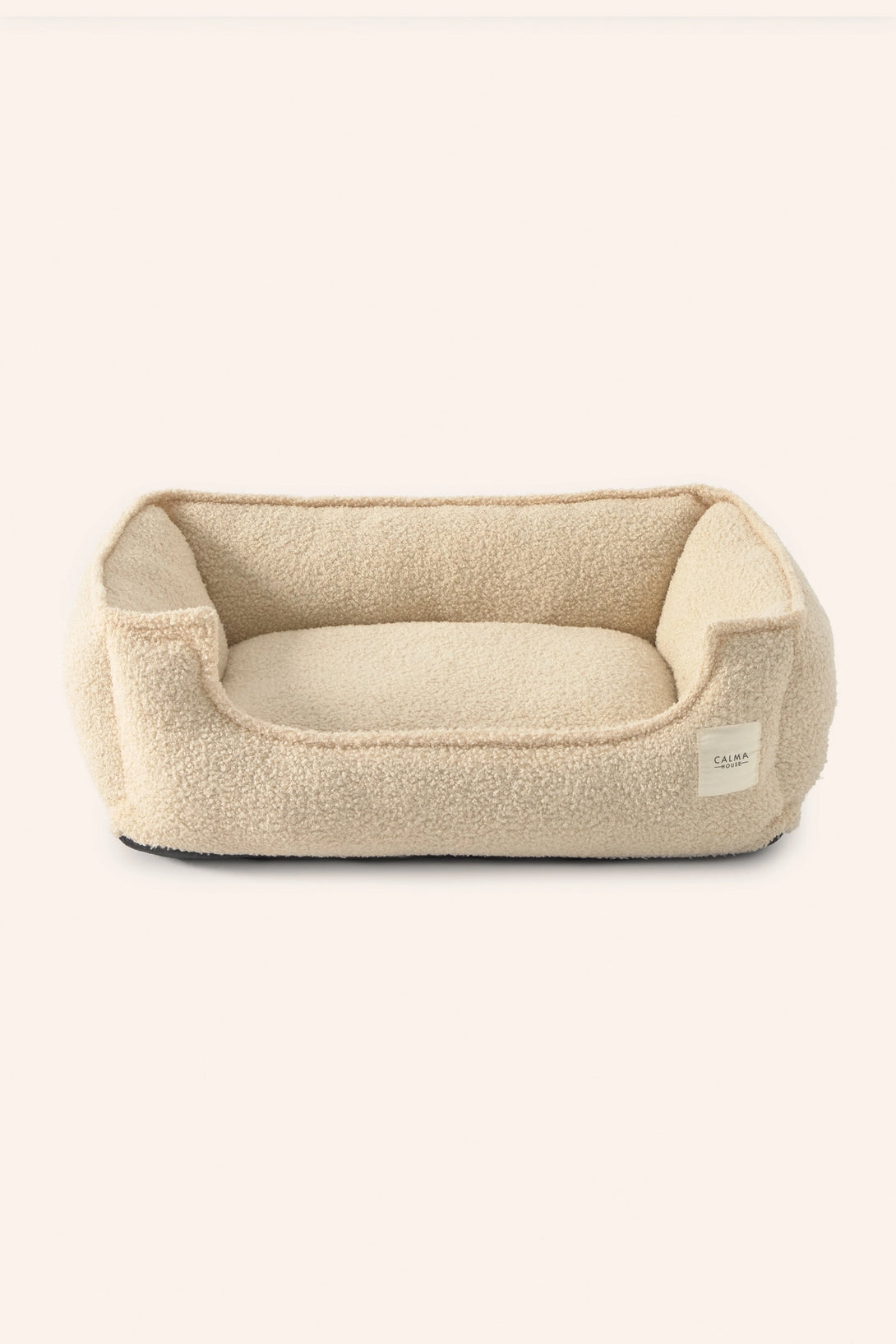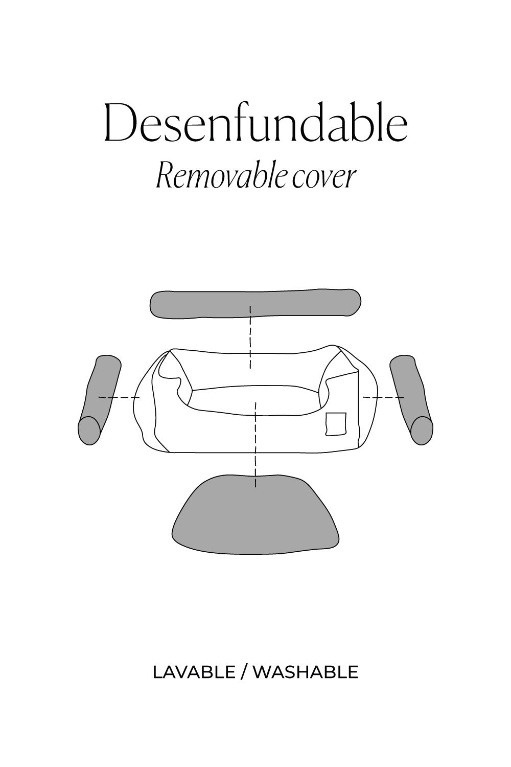 Removable cover pet bed in ecru. Blanket fabric. The inner cushion is removable. Zipper closure. Non-slip bottom.