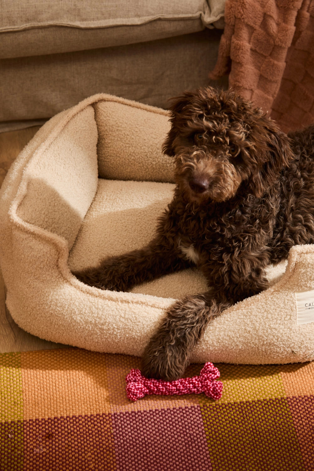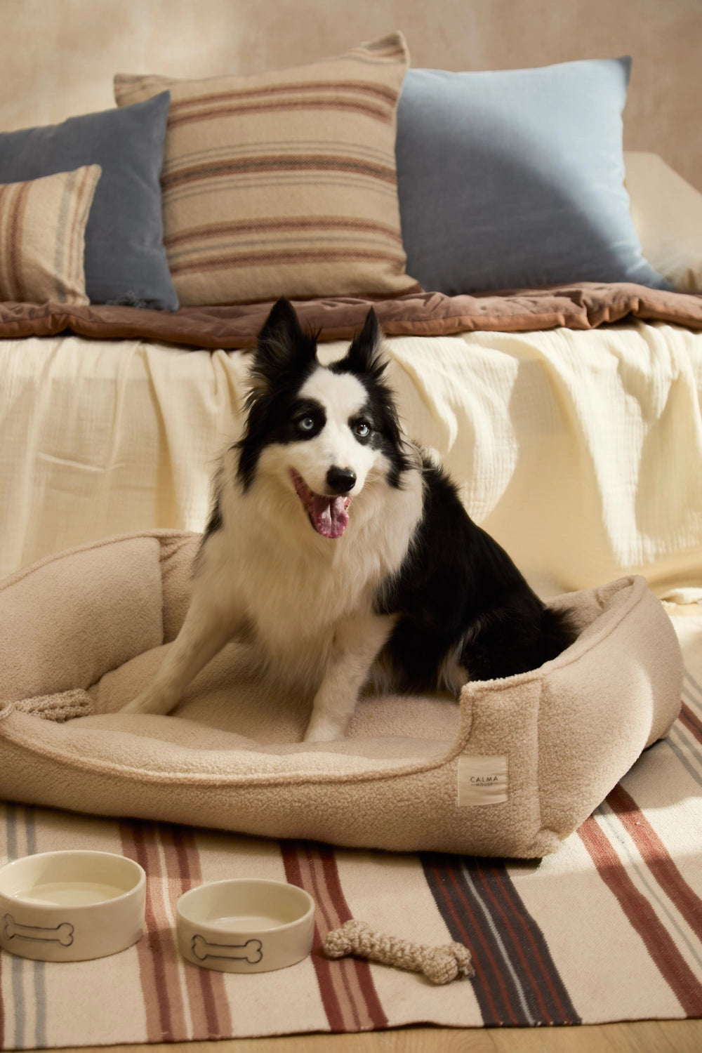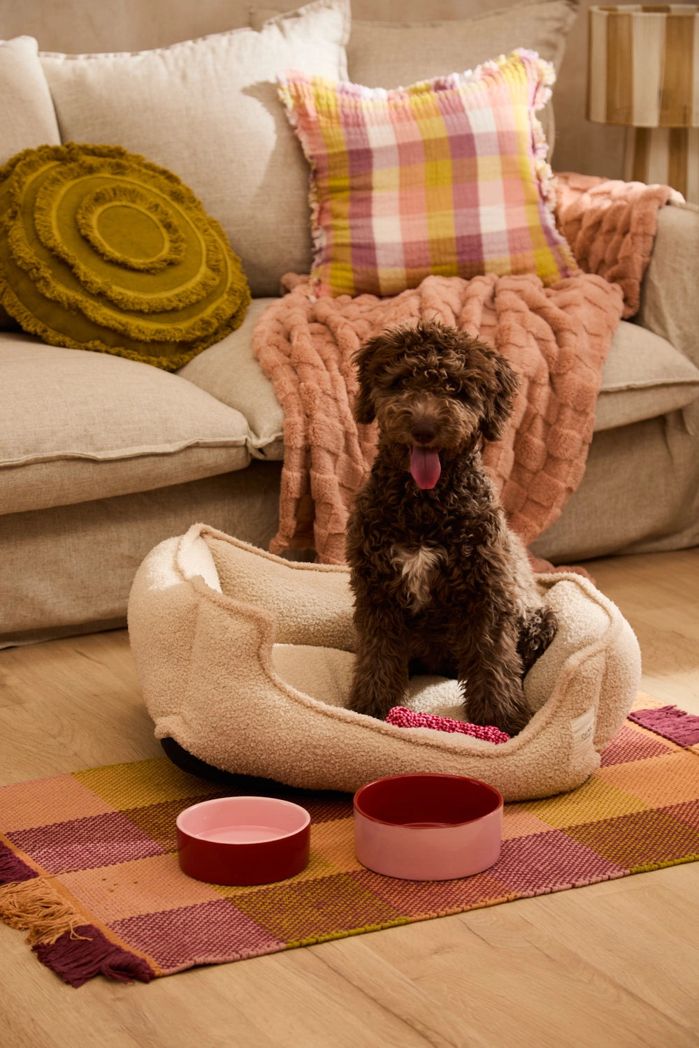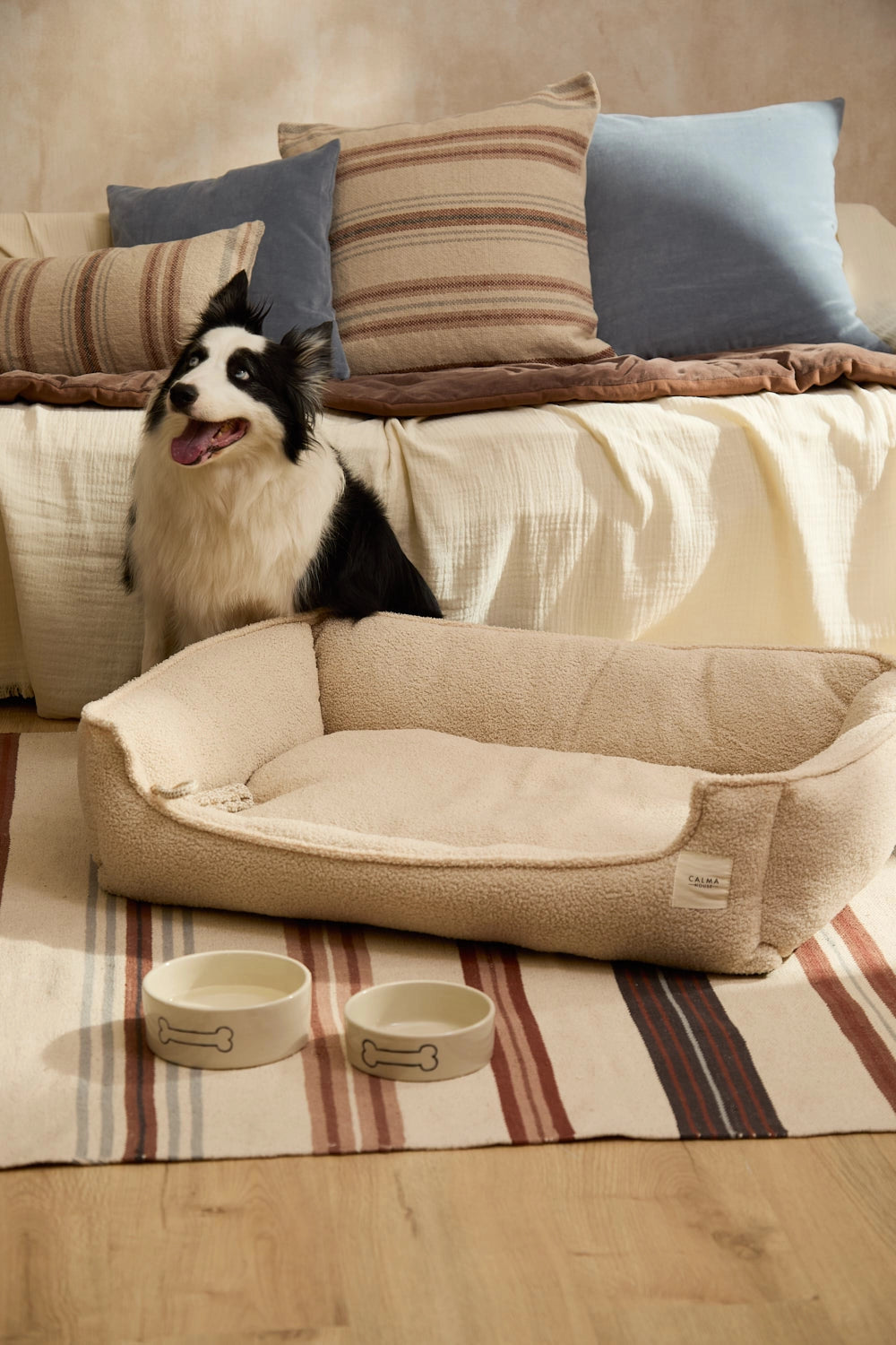 Removable cover pet bed in ecru. Blanket fabric. The inner cushion is removable. Zipper closure. Non-slip bottom.