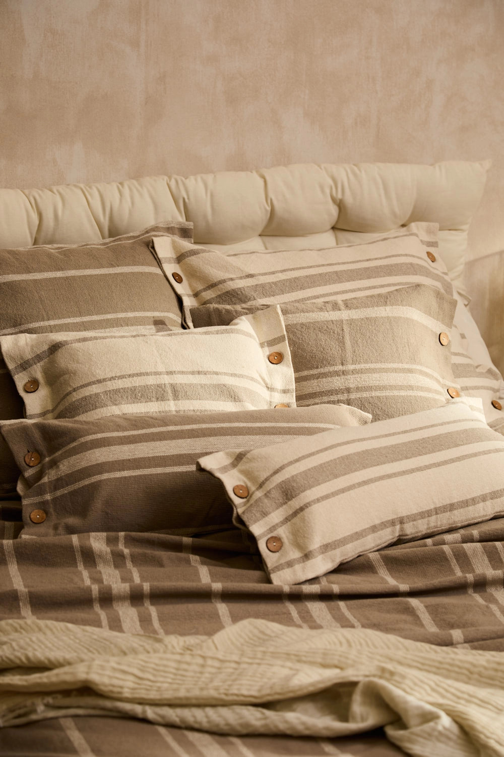 Sorento beige striped square cushion cover with buttons