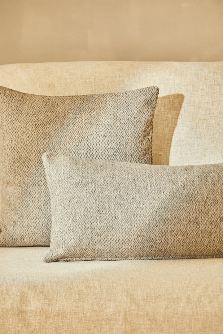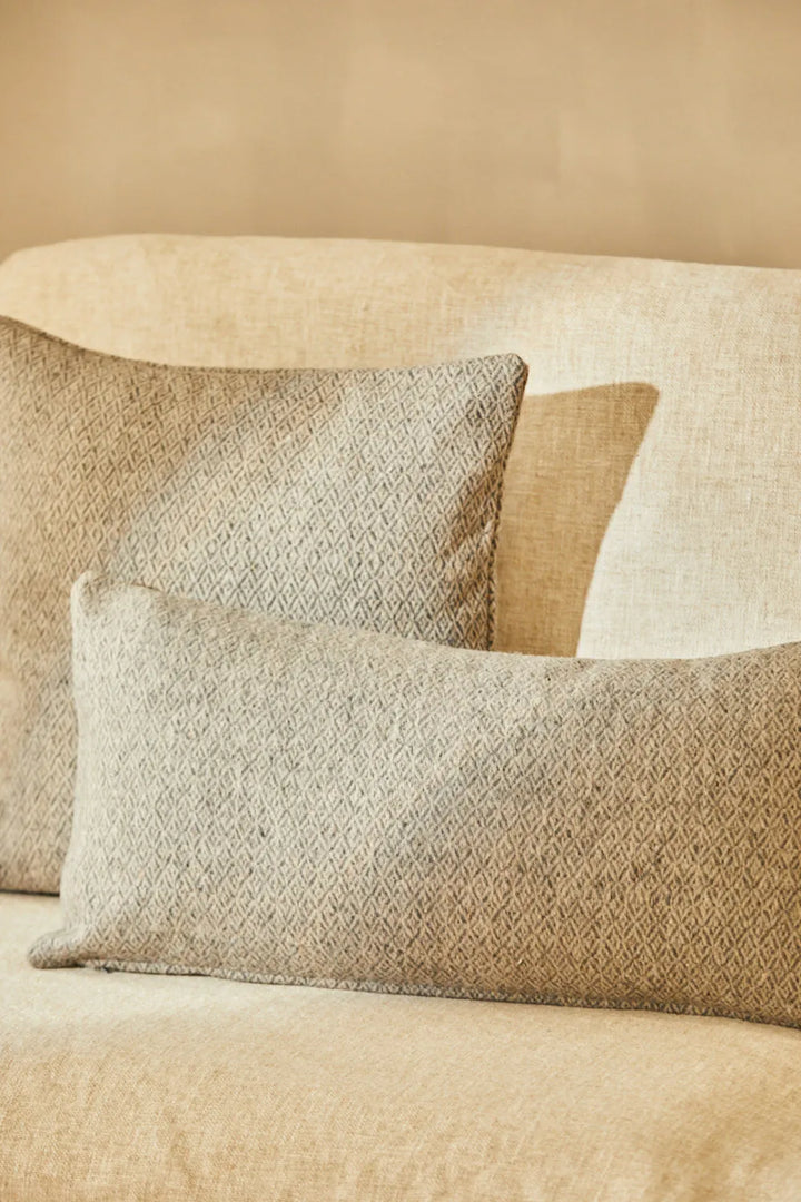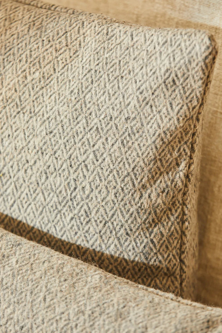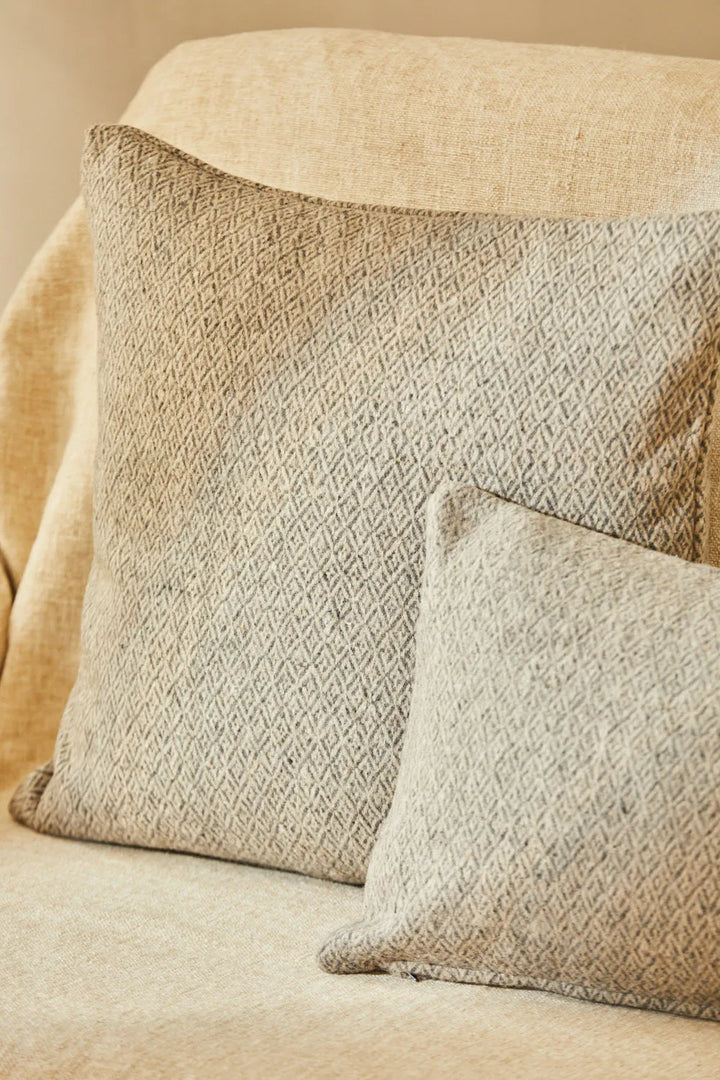 Made of high quality wool, this cover is distinguished by its herringbone weave, which adds an elegant and sophisticated texture. The neutral gray color offers versatility that blends with a variety of decorating styles, bringing a hint of serenity and sophistication.