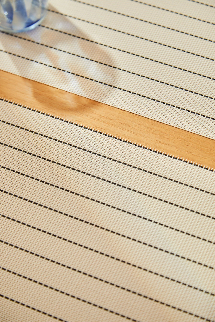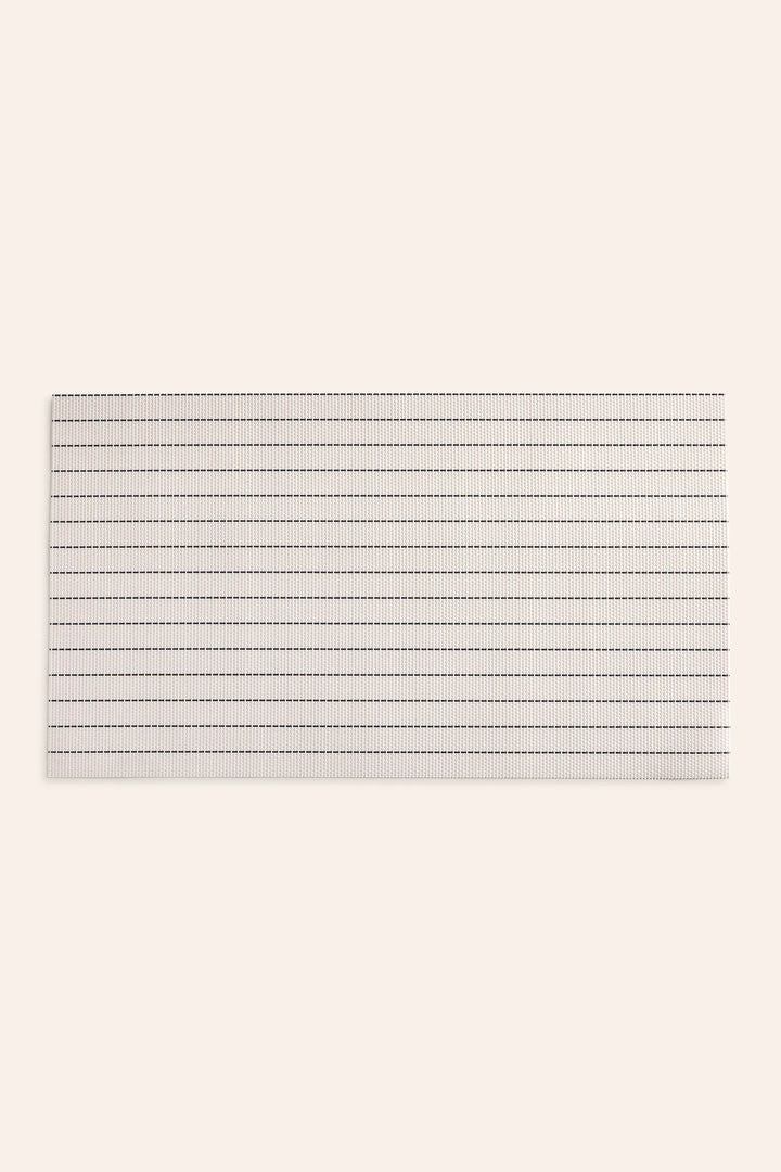 Stain-resistant individual tablecloth with PVC and recycled PET thread 30x45. Black thin striped design.
