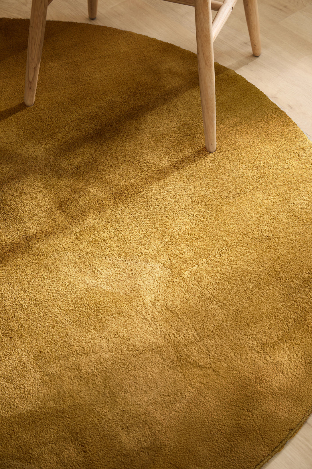 Alfombra lavable redonda de pelo suave en tono mostaza Apolo
