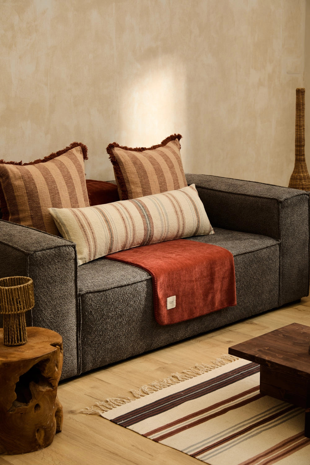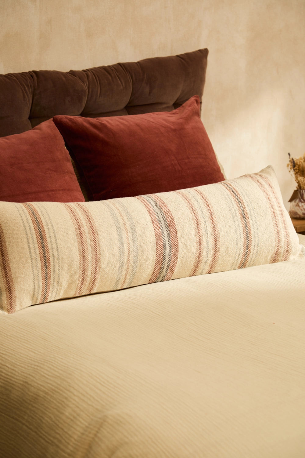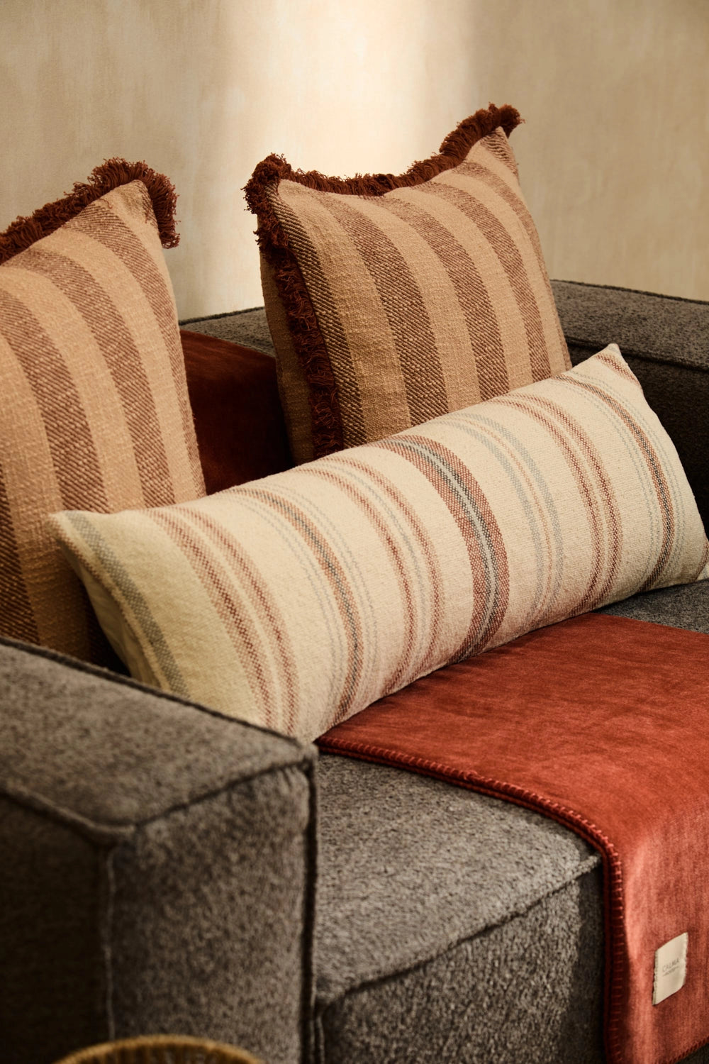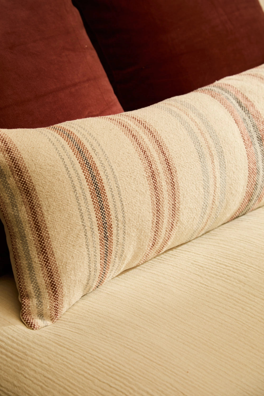 Funda de cojín alargada a rayas en tonos tierra Peru