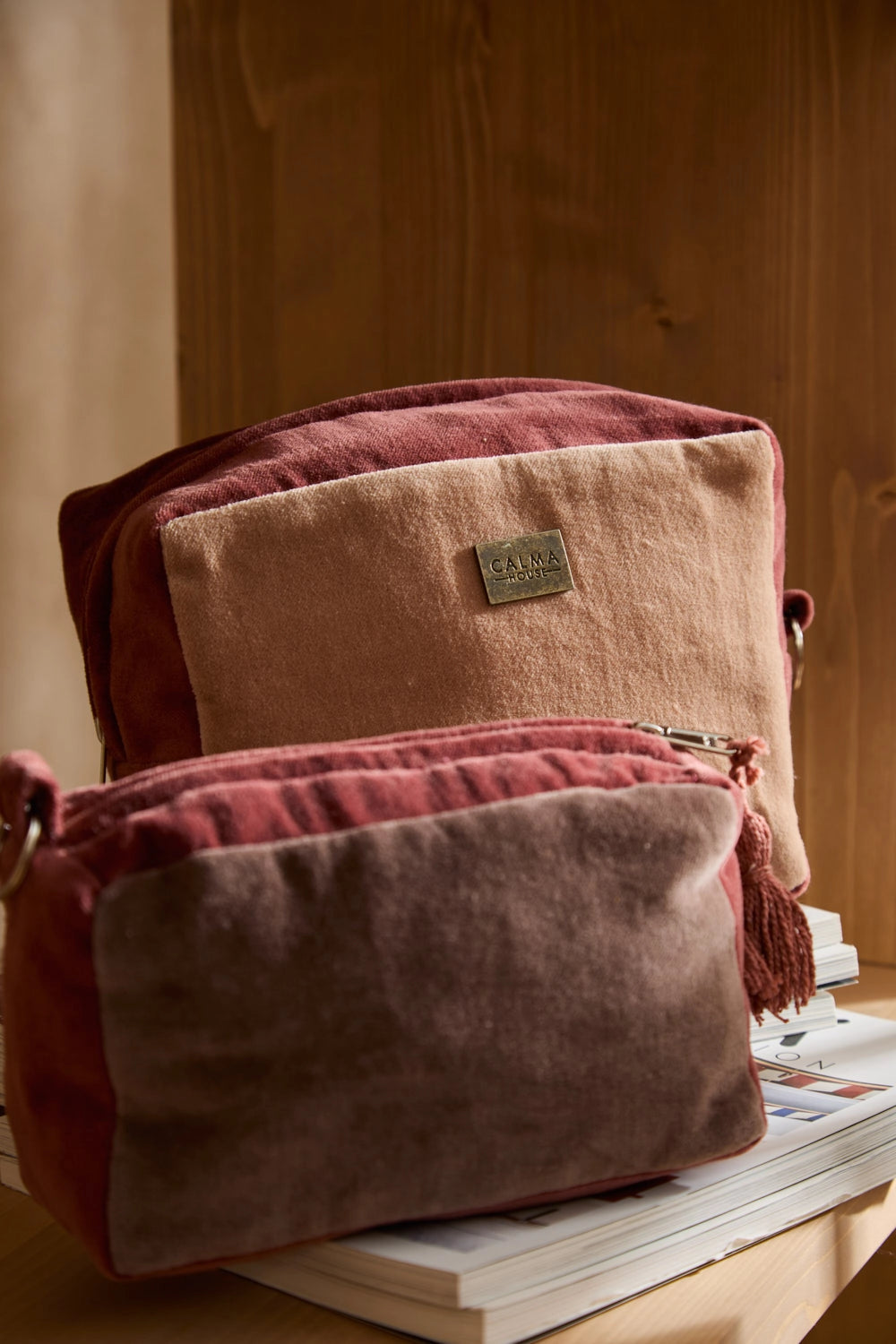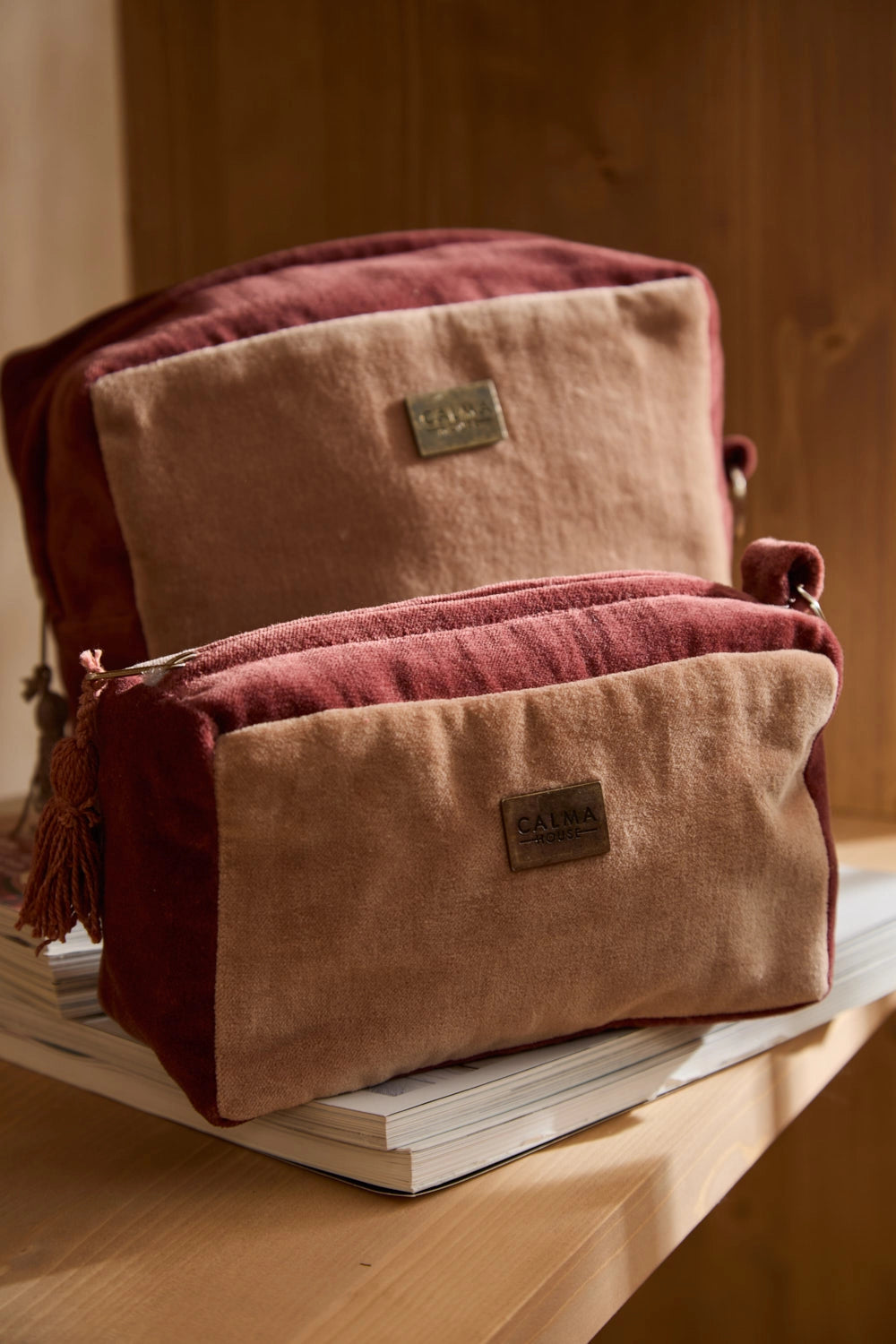 Neceser de terciopelo en tonos tierra Osaka
