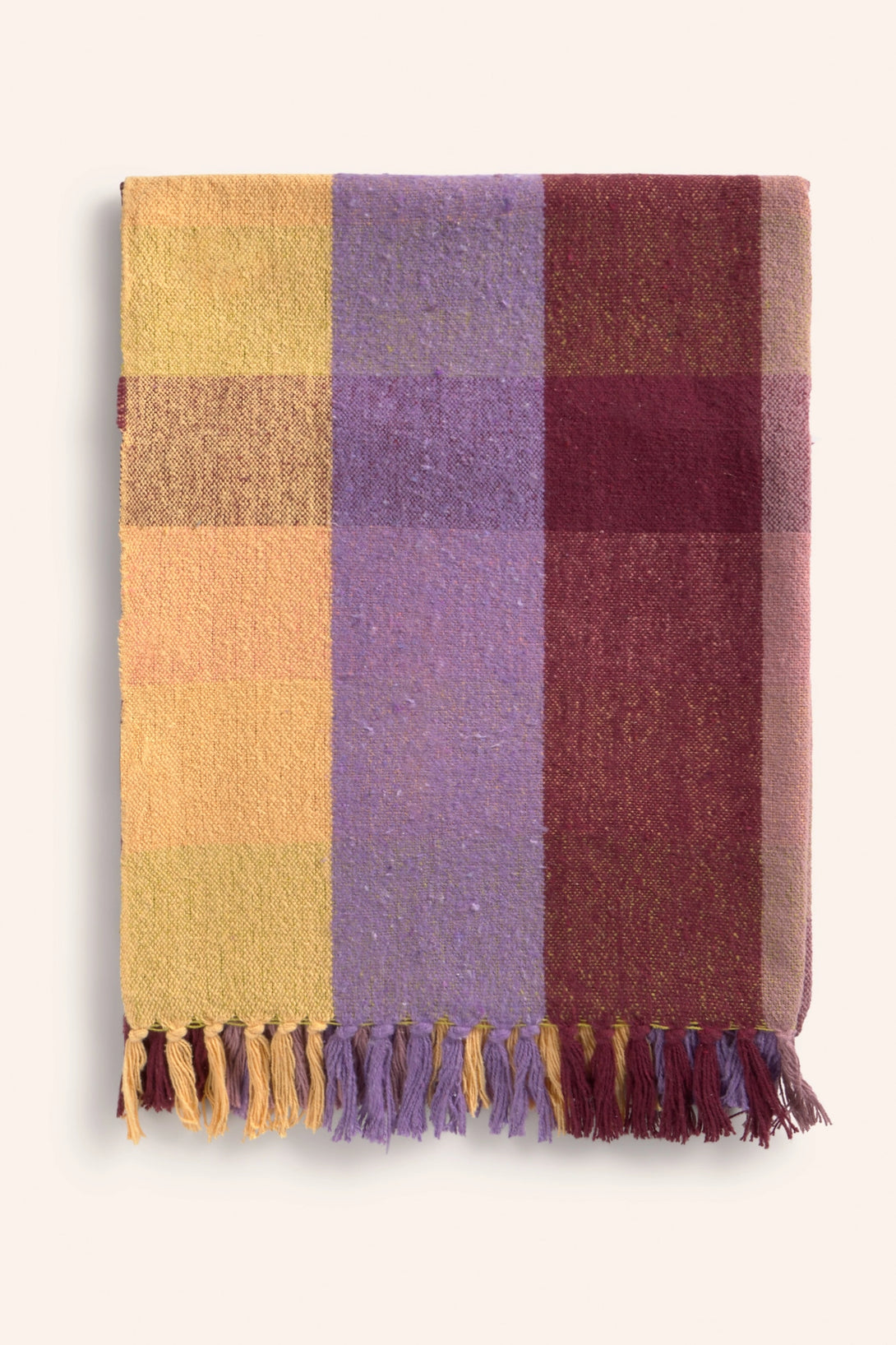 Plaid de algodón cardado en varios colores cálidos. Acabado en flecos.