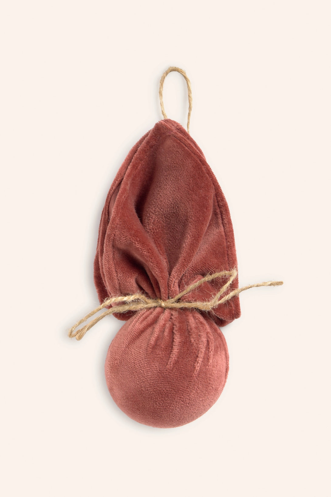 Boule de Noël en velours aux tons terre à suspendre pendant les fêtes.