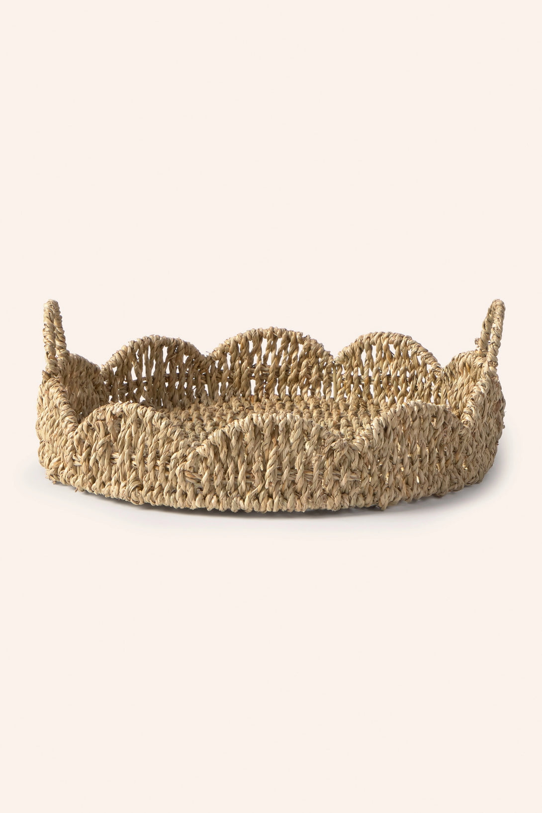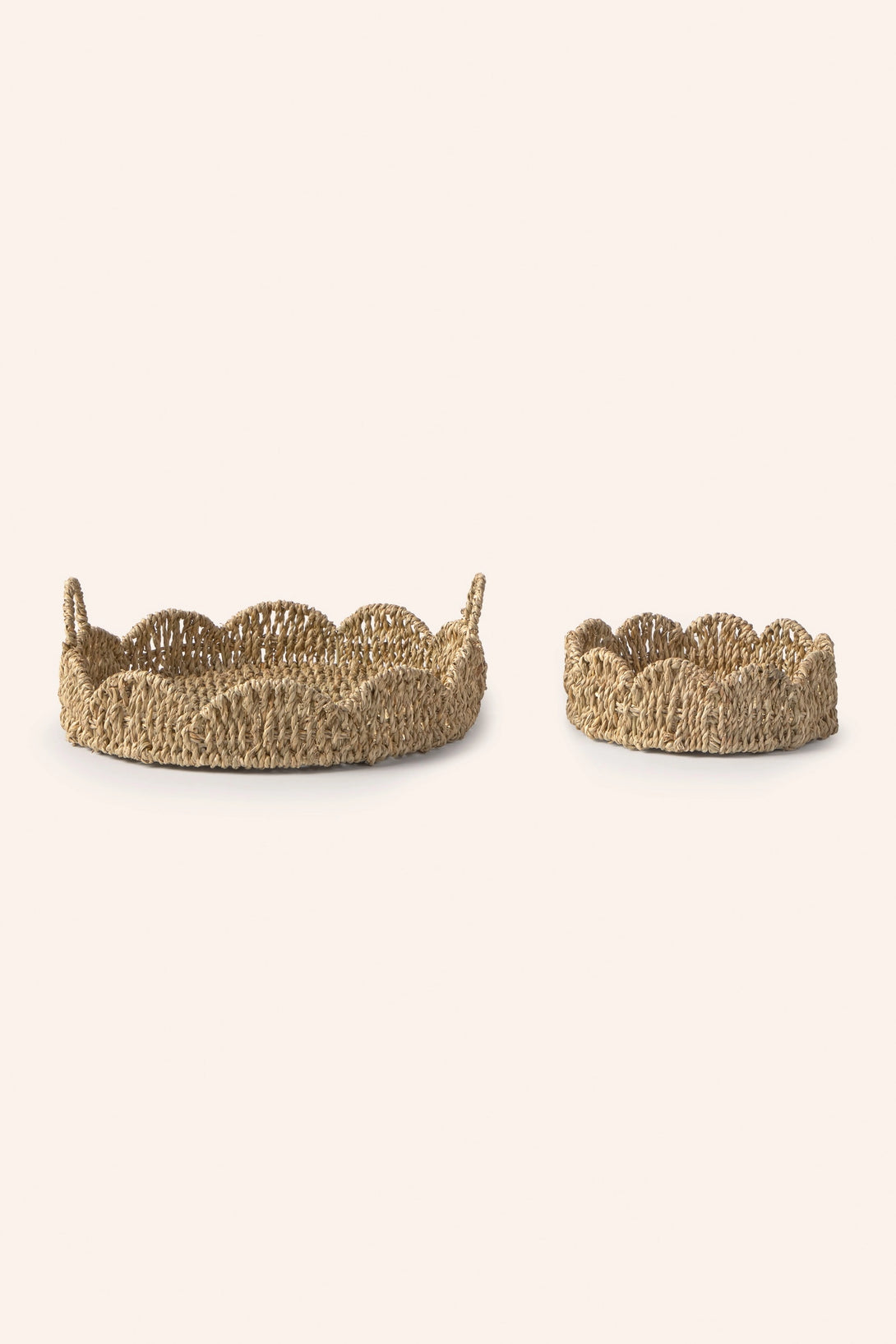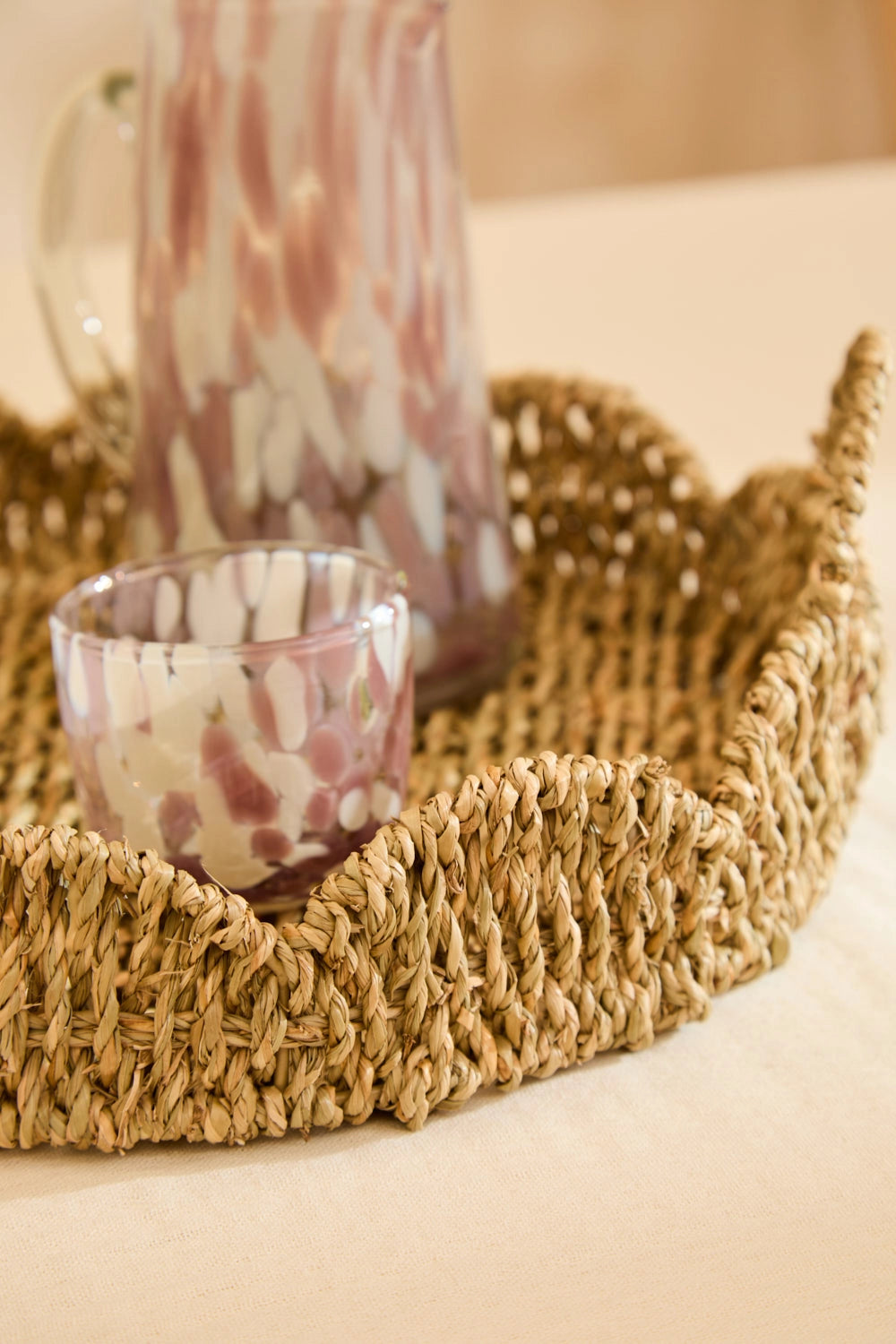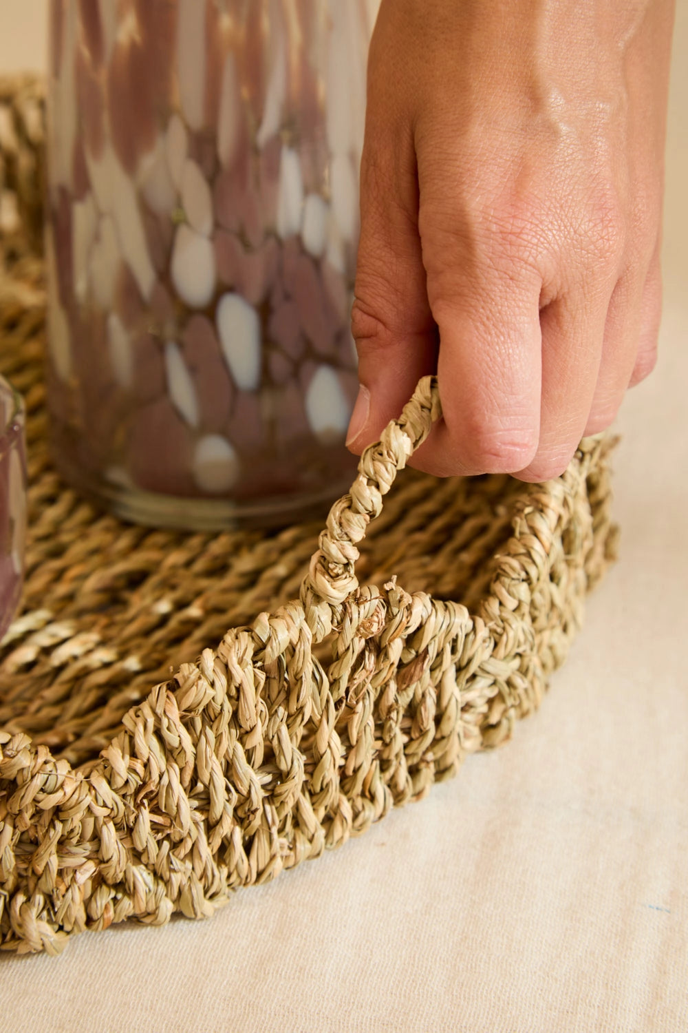 Plateau en jonc de mer avec cadre en métal. Le grand format comprend des poignées.