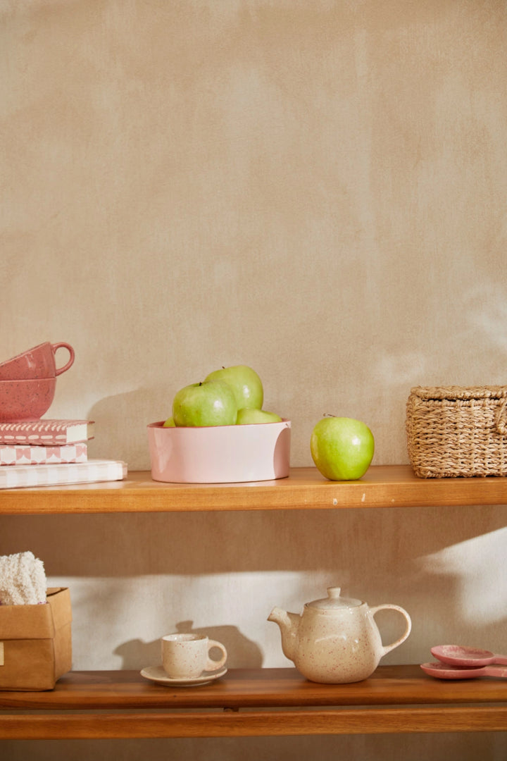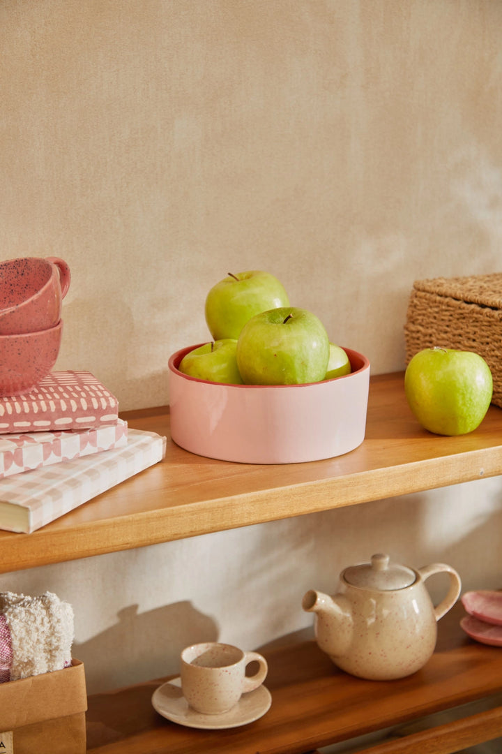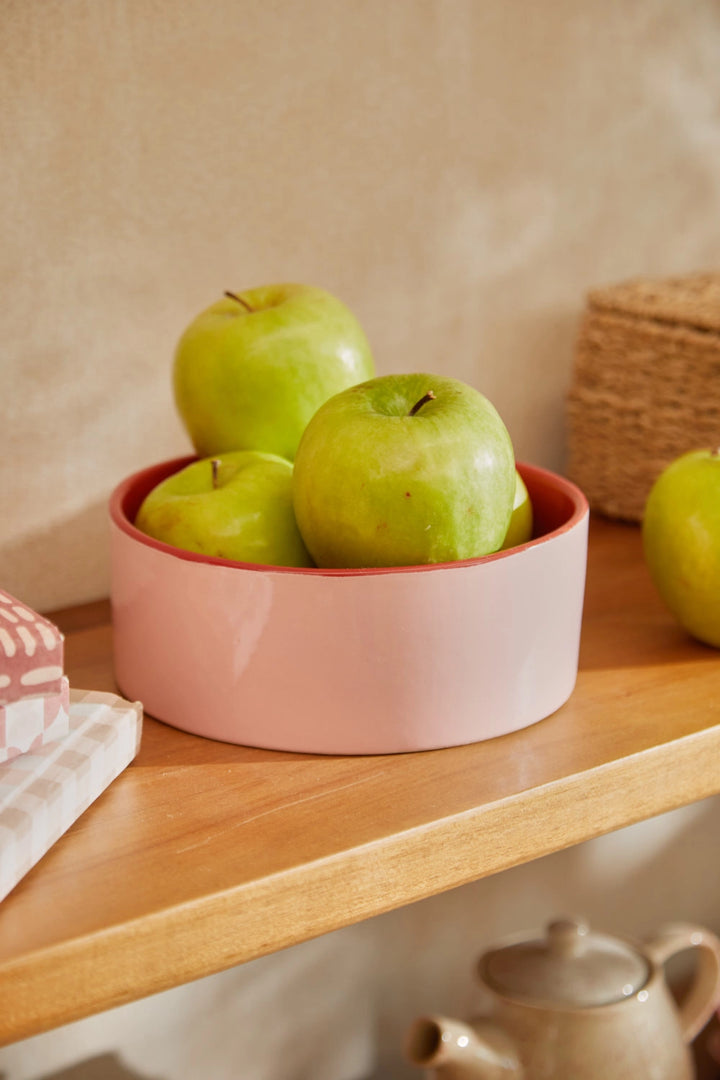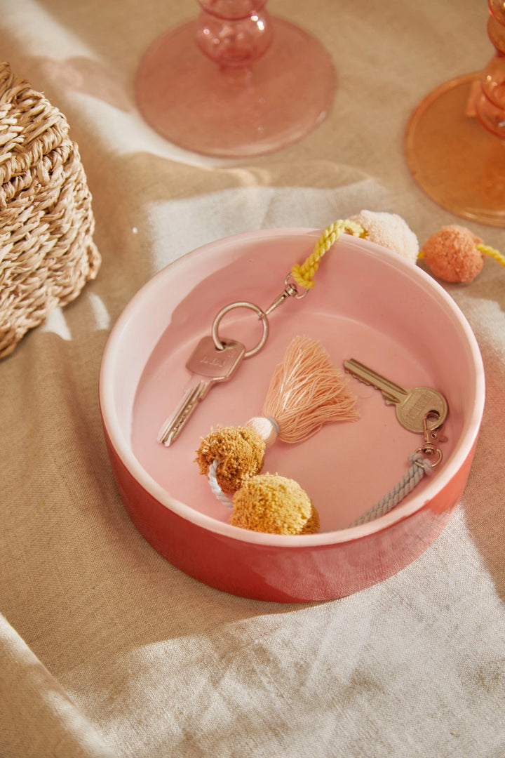 Assiette en céramique peinte en rose. Contraste peint à l'intérieur.