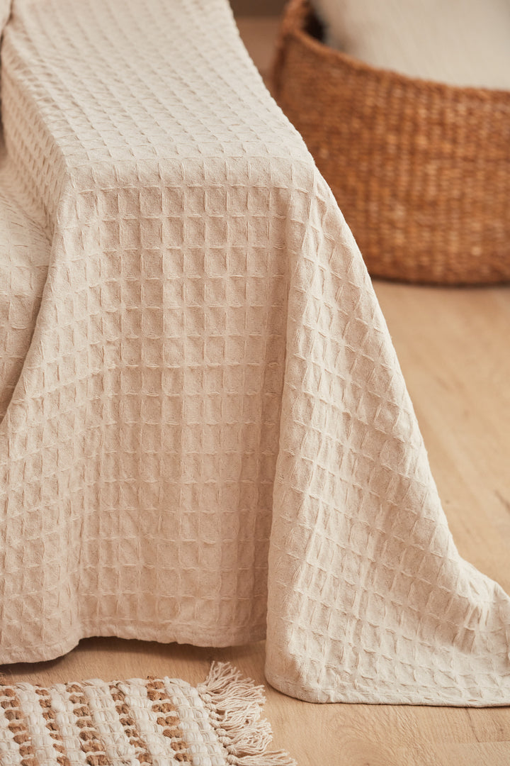 La housse de canapé en coton nid d'abeille écru Panal est une option élégante et polyvalente pour rafraîchir votre salon. Fabriquée à partir de 100% de coton et utilisant la technique décorative du nid d'abeille, cette housse de canapé offre un effet très sophistiqué à votre mobilier.