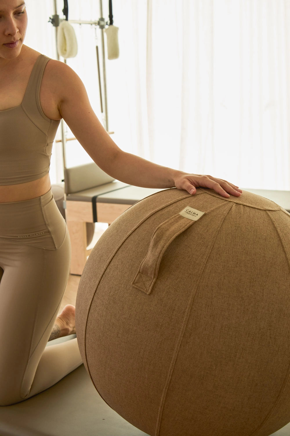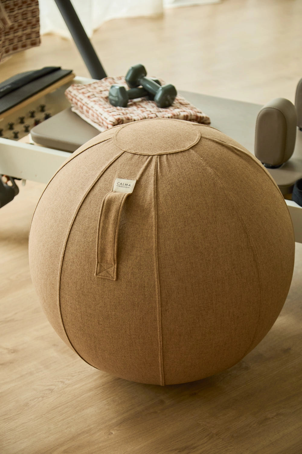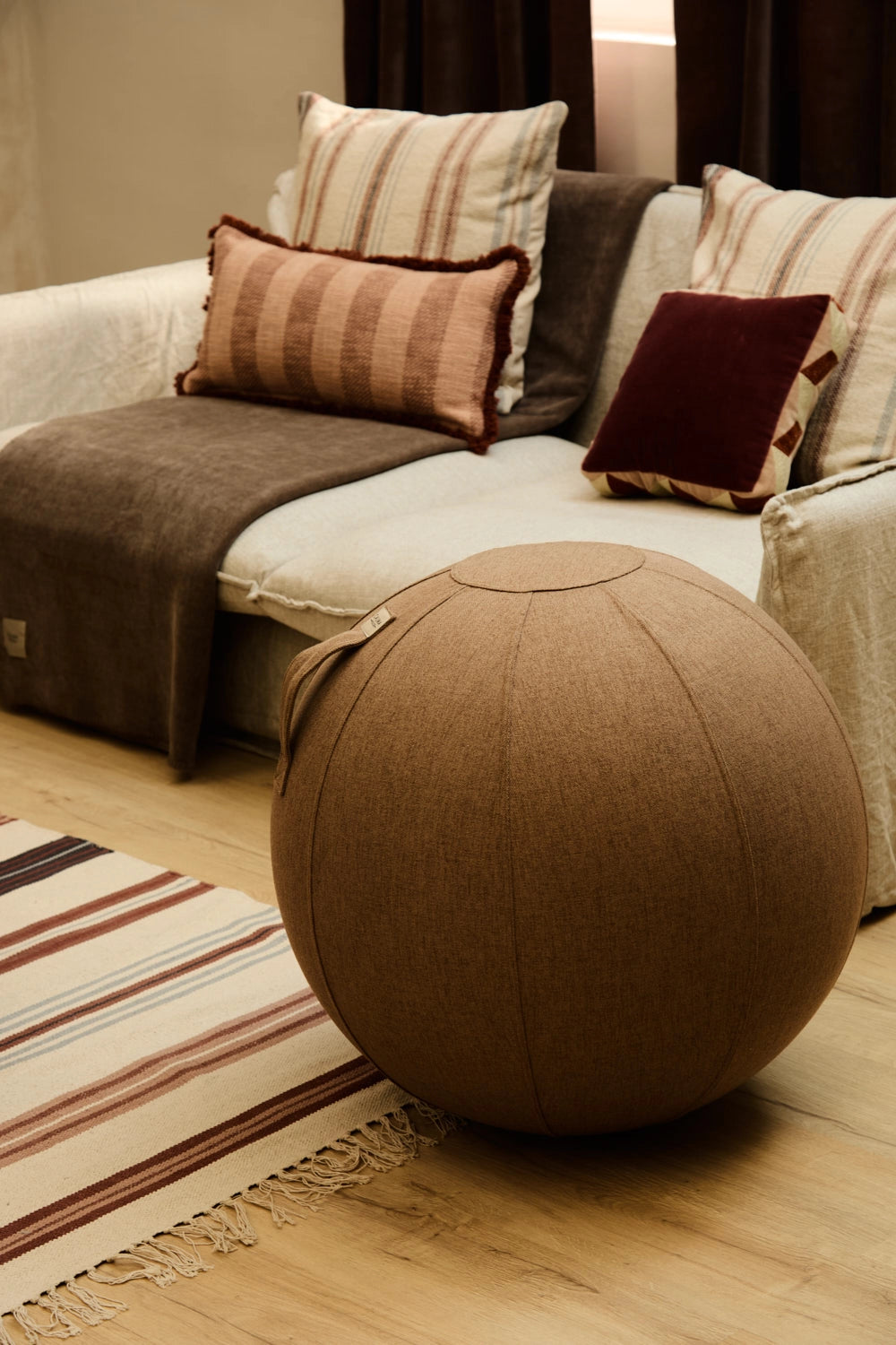 Ballon ergonomique ou ballon de fitness marron. Étui zippé avec poignée. Ballon gonflable inclus.