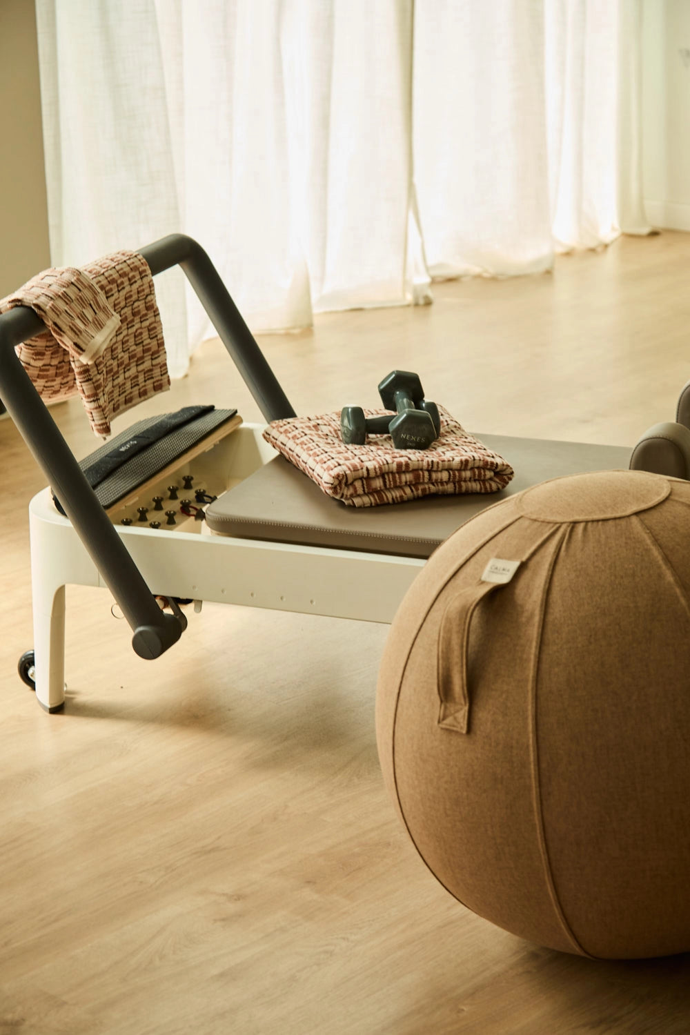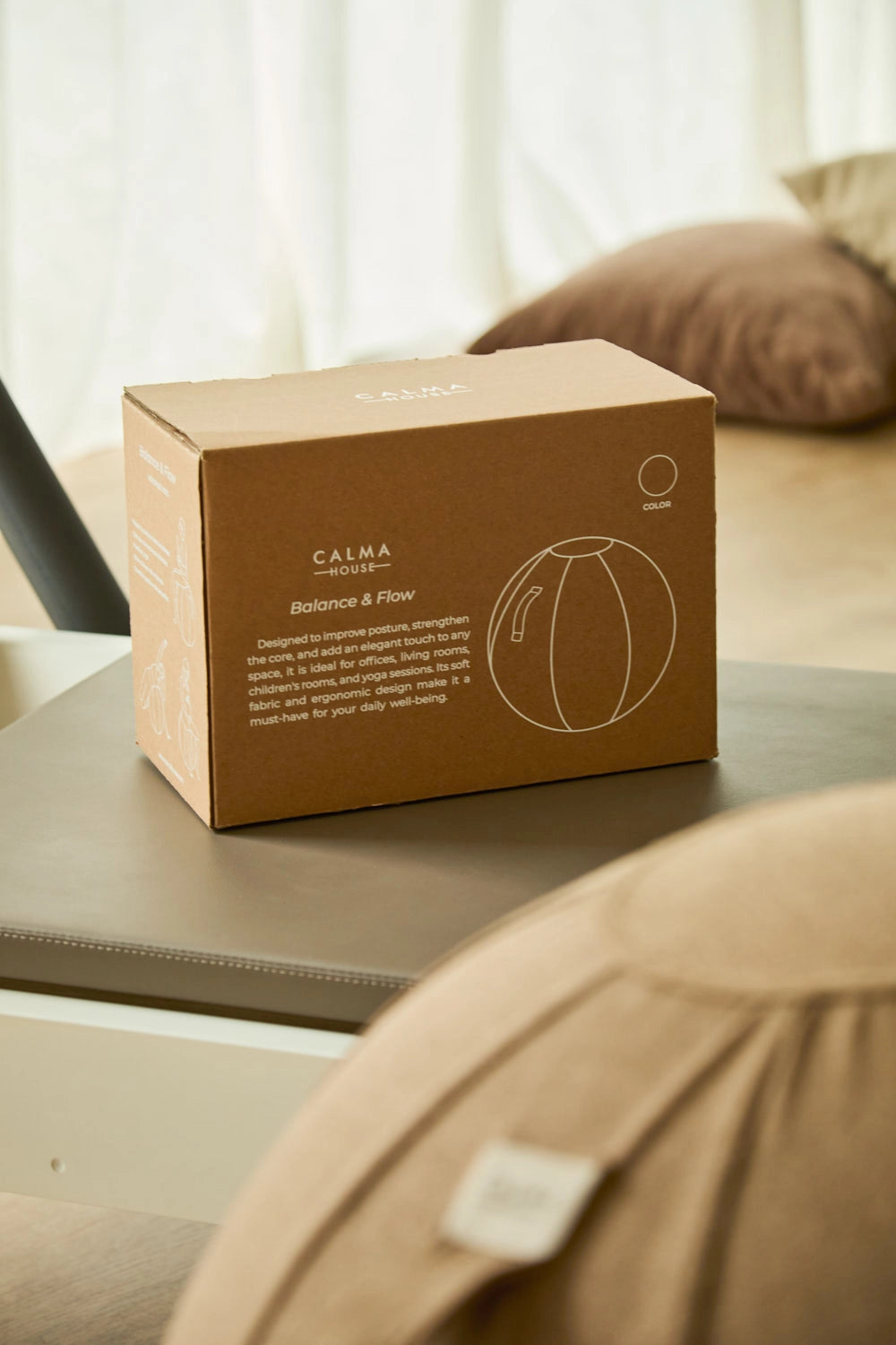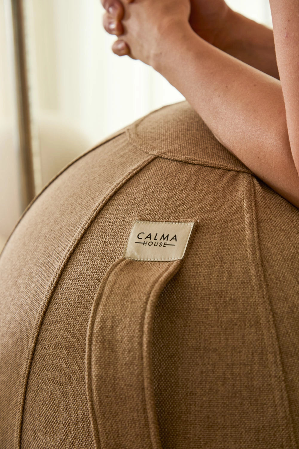 Ballon ergonomique ou ballon de fitness marron. Étui zippé avec poignée. Ballon gonflable inclus.