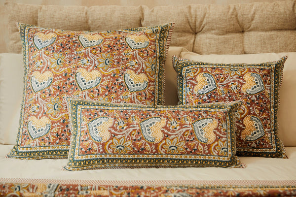Housse de coussin carrée en coton à franges couleur terre Jaipur