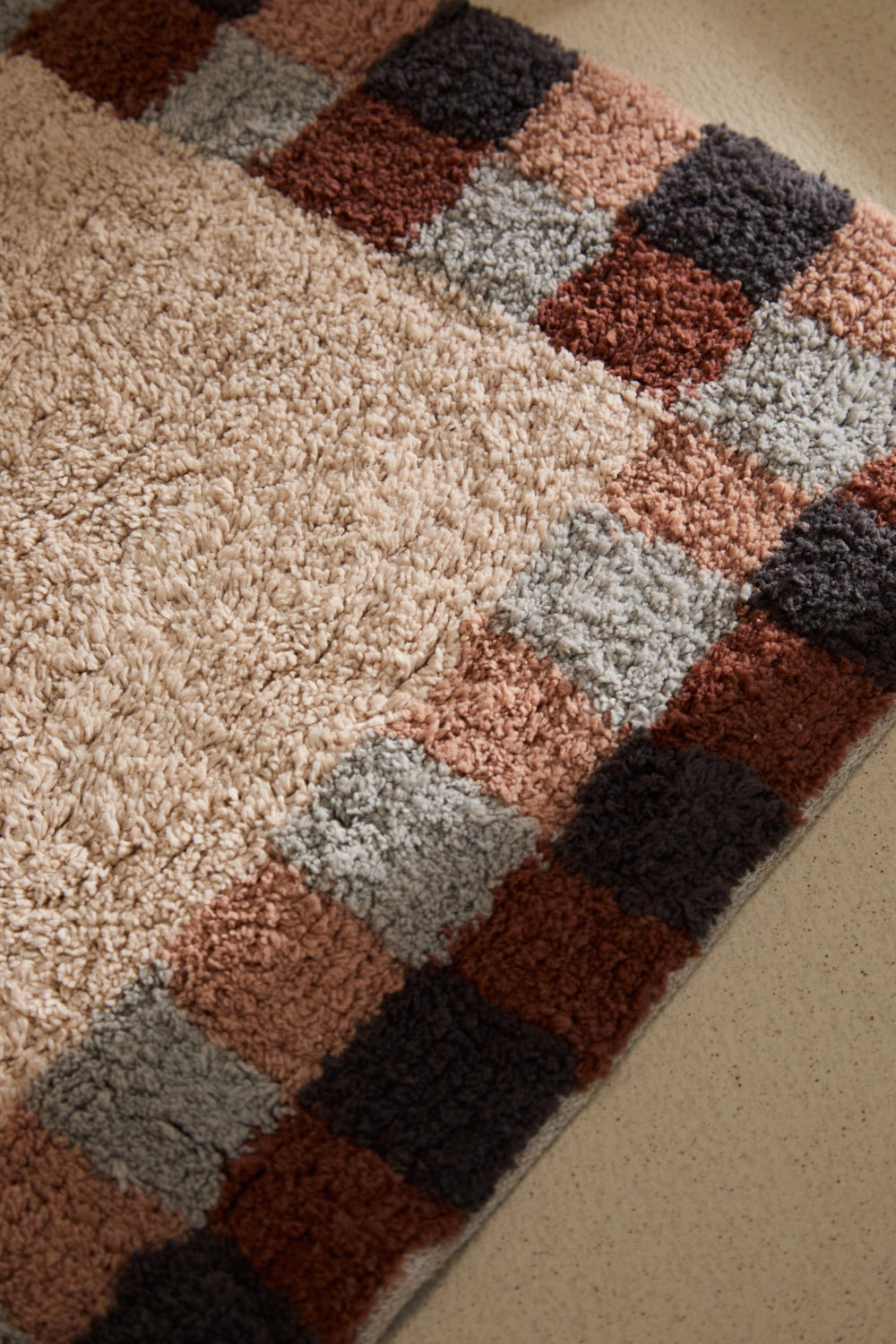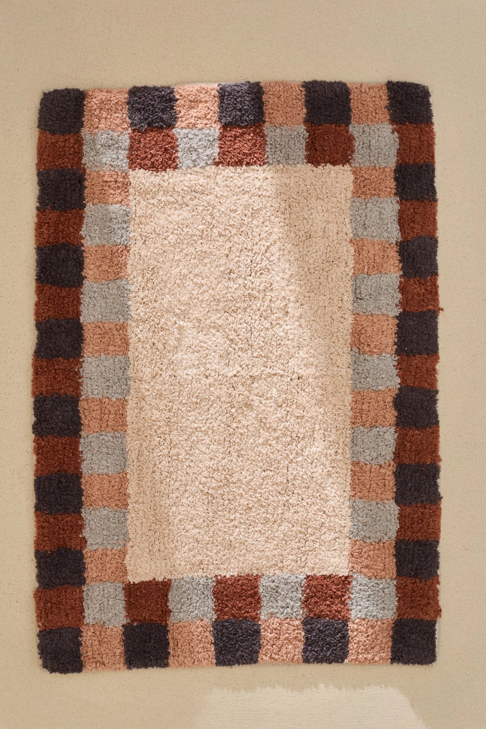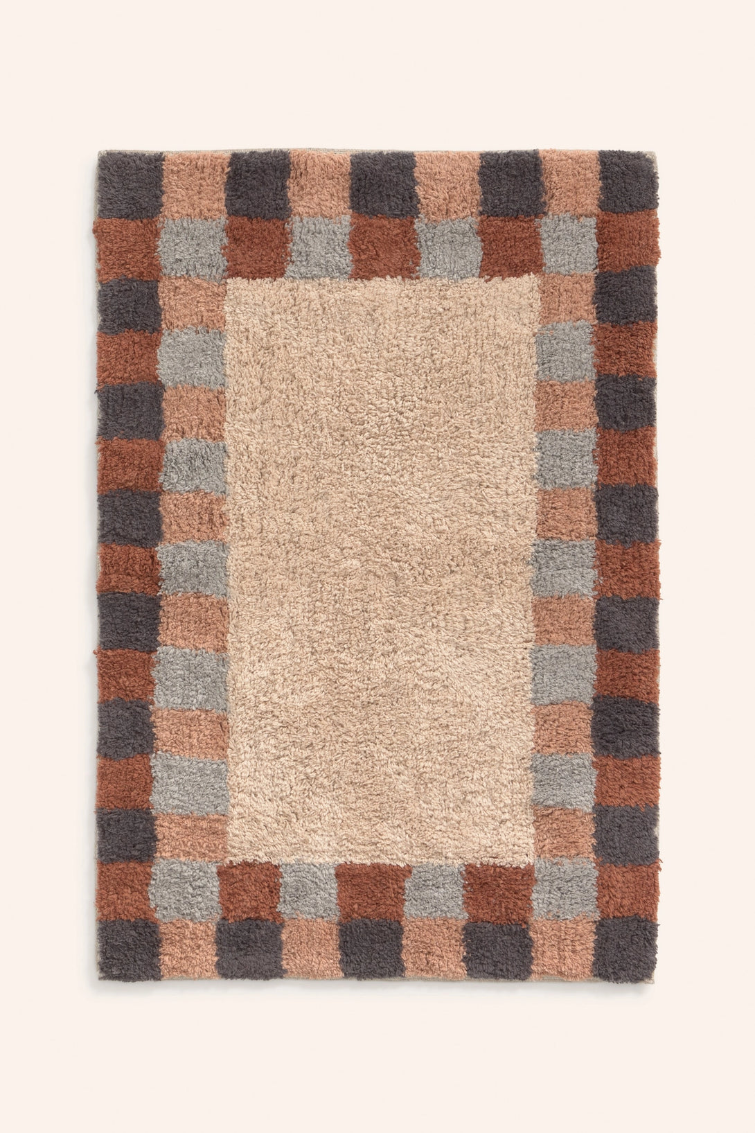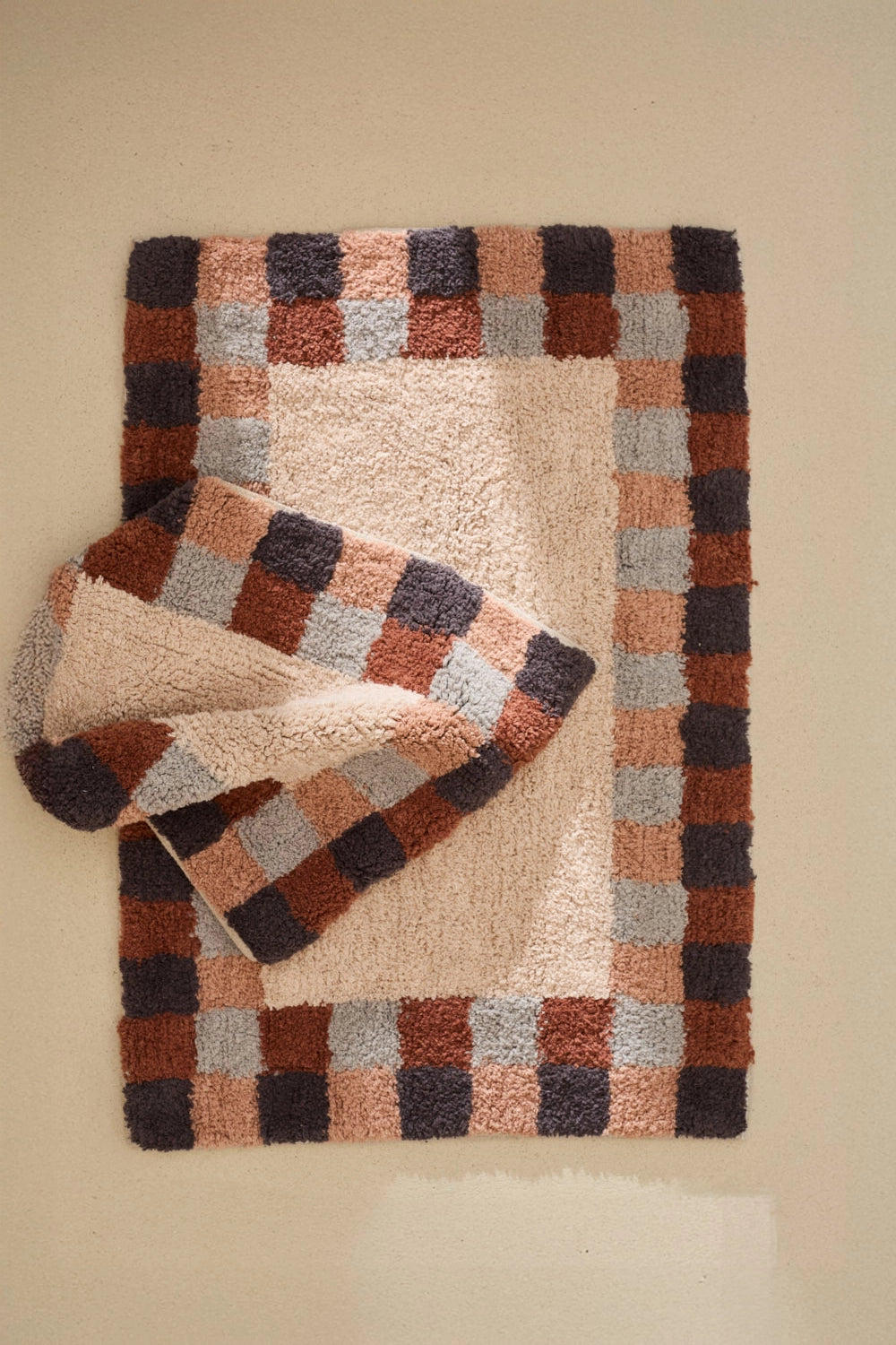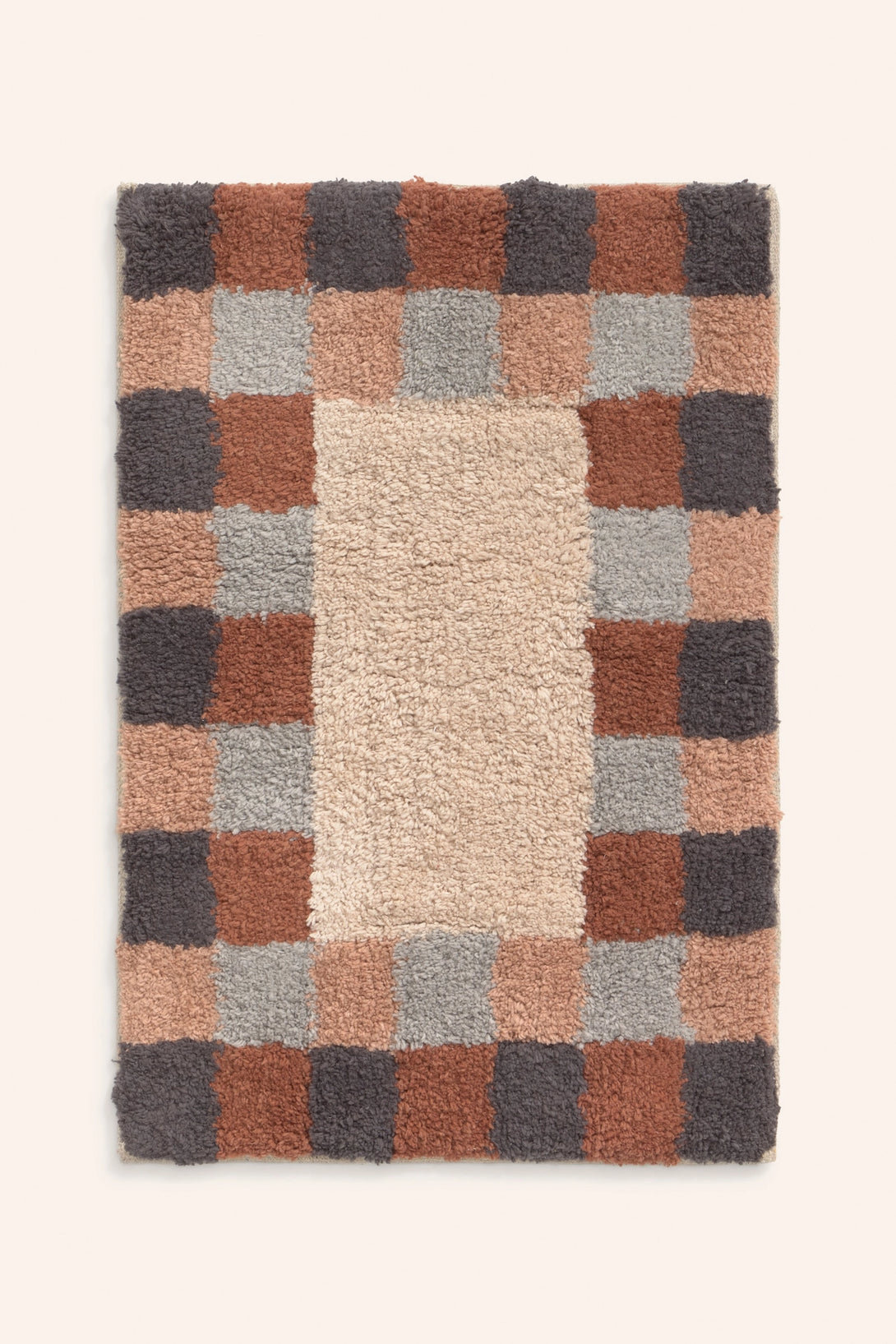 Tapis de bain en coton touffeté avec un motif à carreaux terreux.