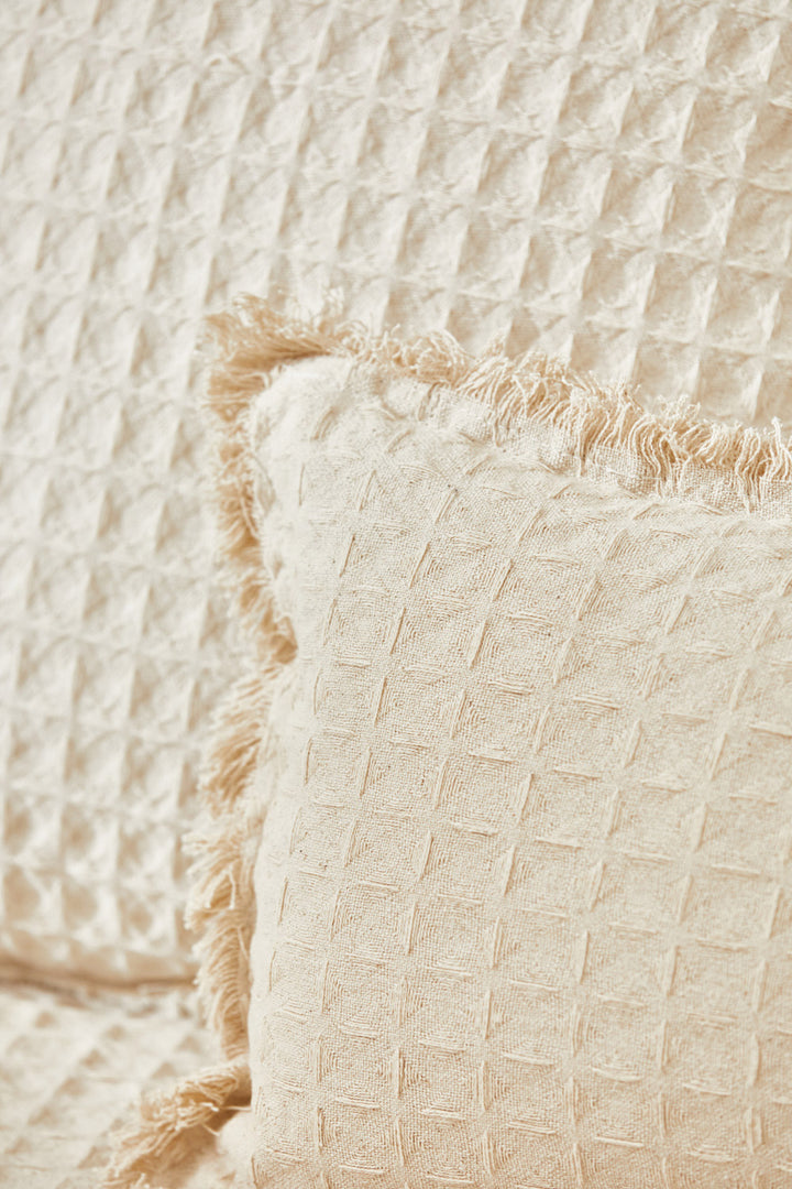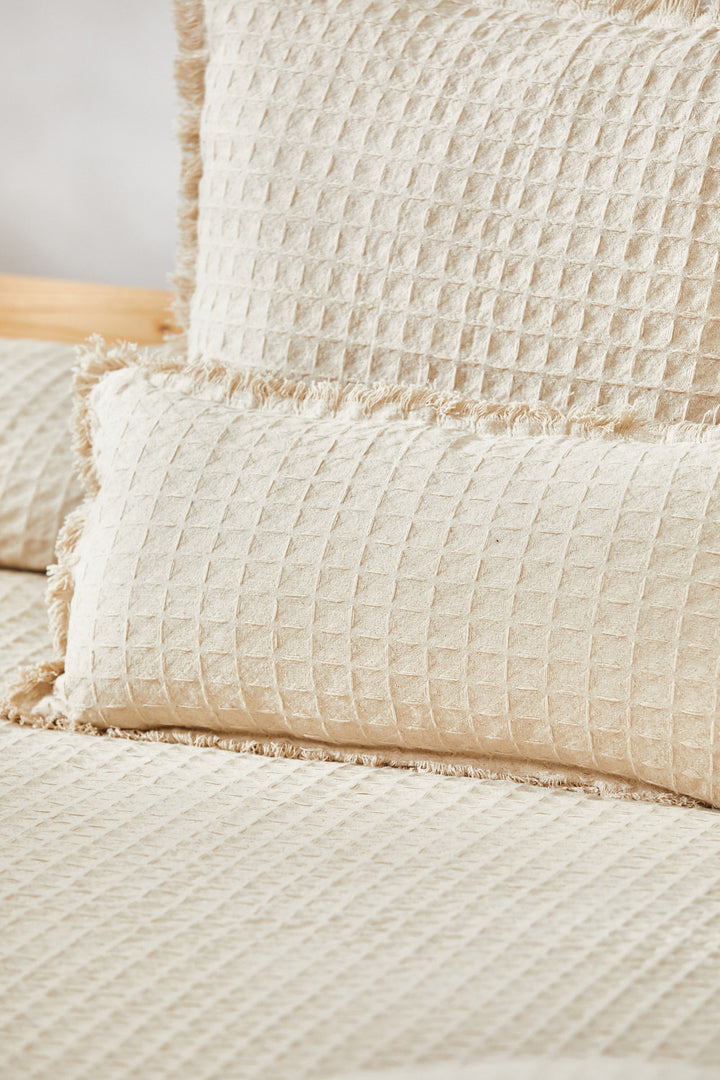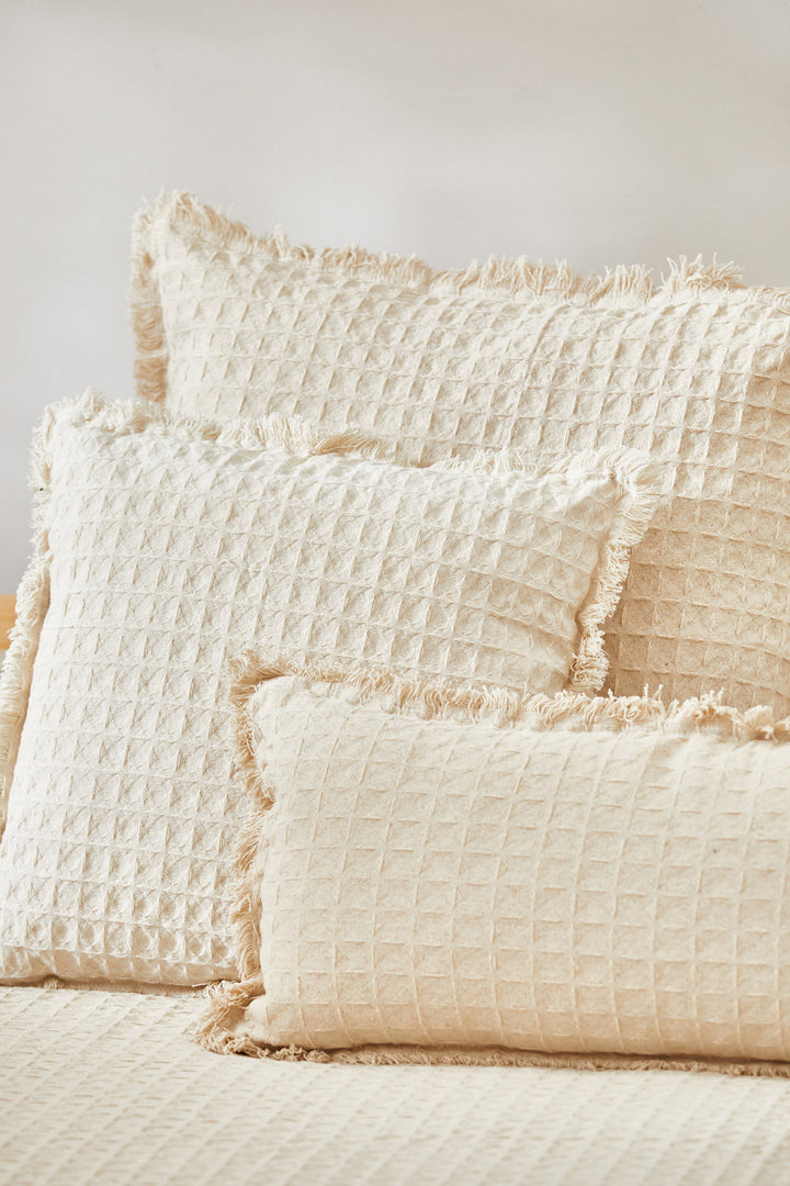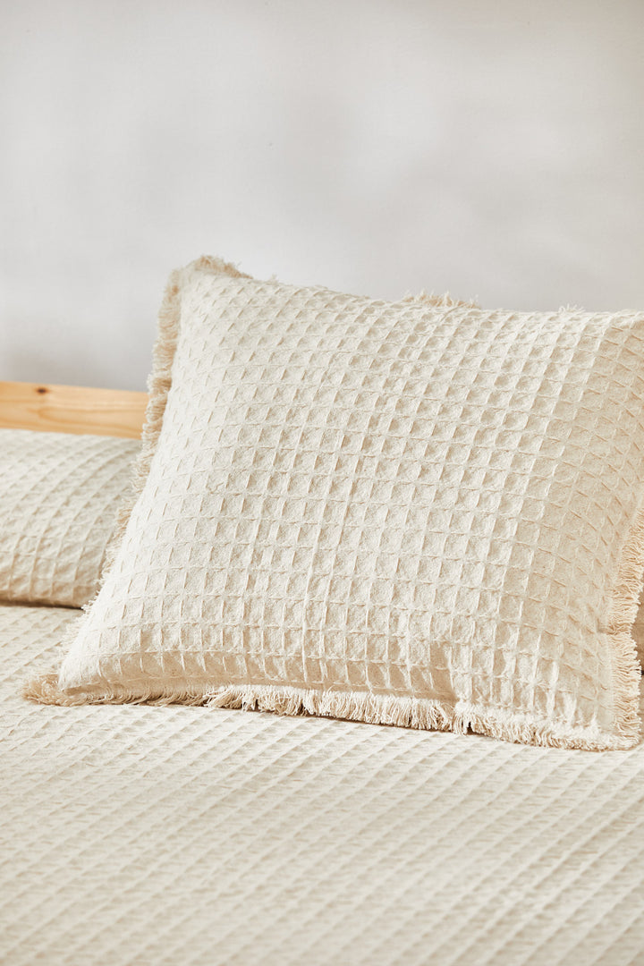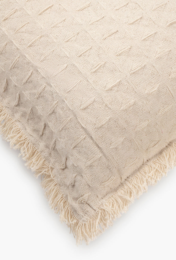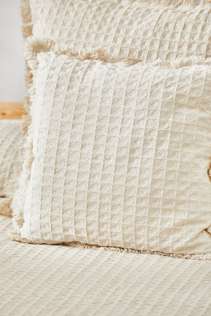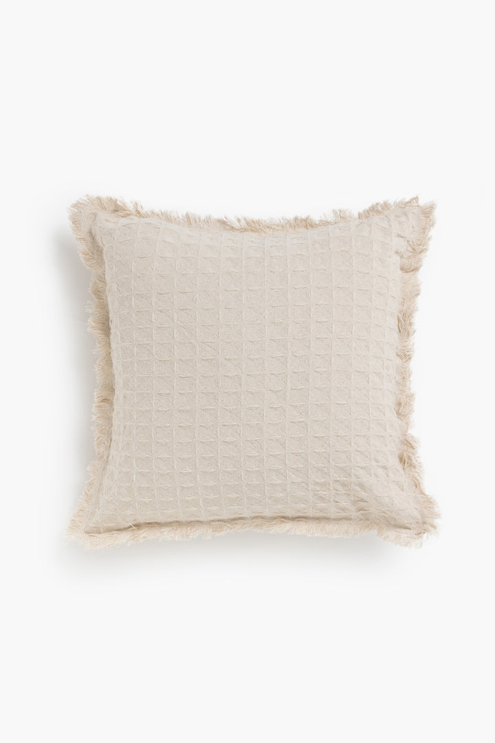 La housse de coussin de couleur crème de la gamme Panal est fabriquée en nid d'abeille et présente une finition élégante avec des franges. Fabriquée à 100% en coton, cette housse de coussin est un basique polyvalent qui permet de créer des combinaisons avec d'autres coussins de différents motifs et matériaux. Disponible en 4 couleurs, cette pièce est parfaite pour ajouter une touche spéciale à n'importe quel espace. Pour toute question, n'hésitez pas à nous contacter.