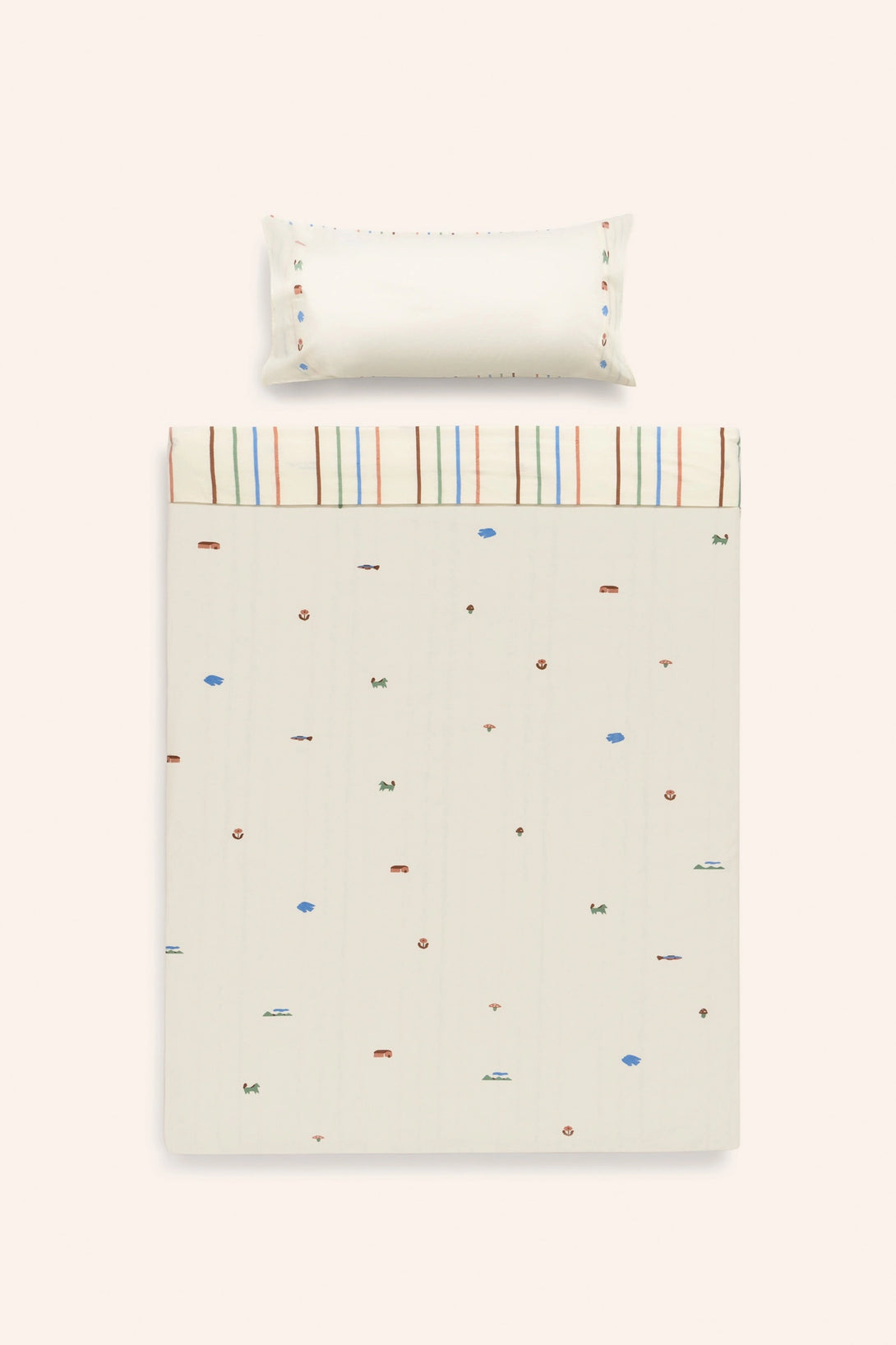 Parure housse de couette et oreiller pour berceau avec imprimé Camp multicolore