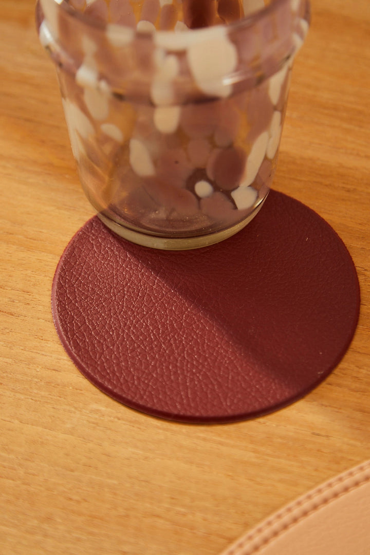 Dessous de verre marron anti-taches et anti-éclaboussures en PVC et PET recyclé. Diamètre 10.