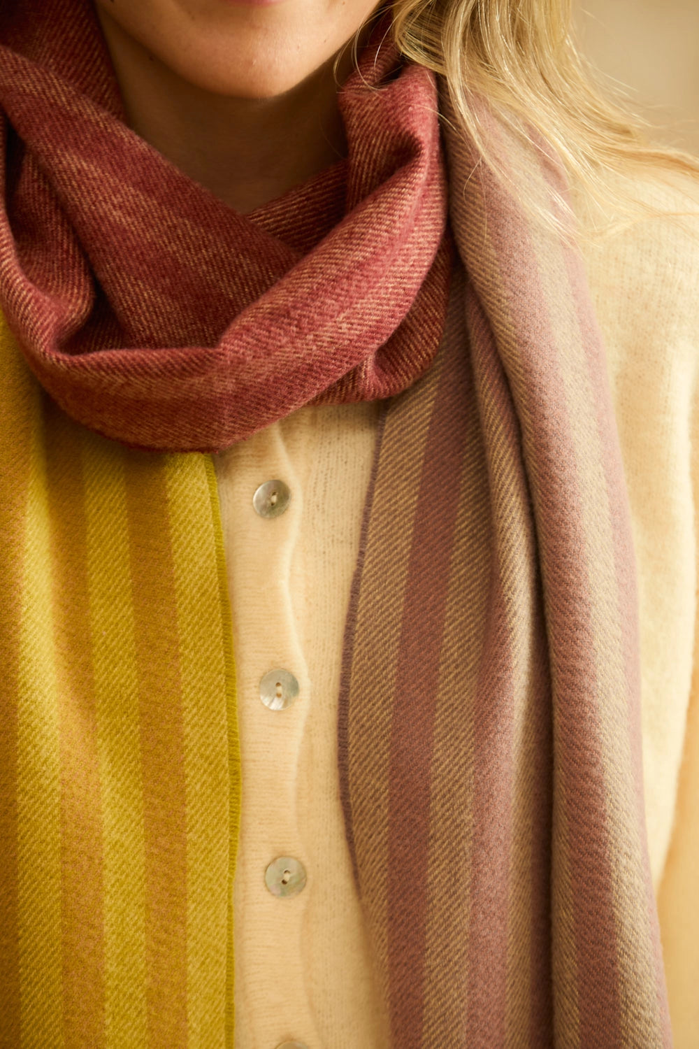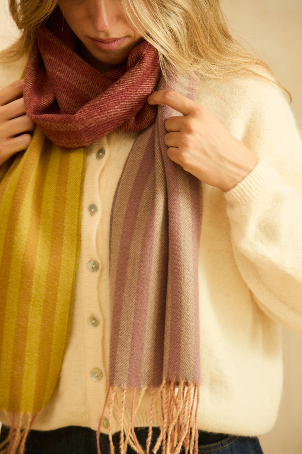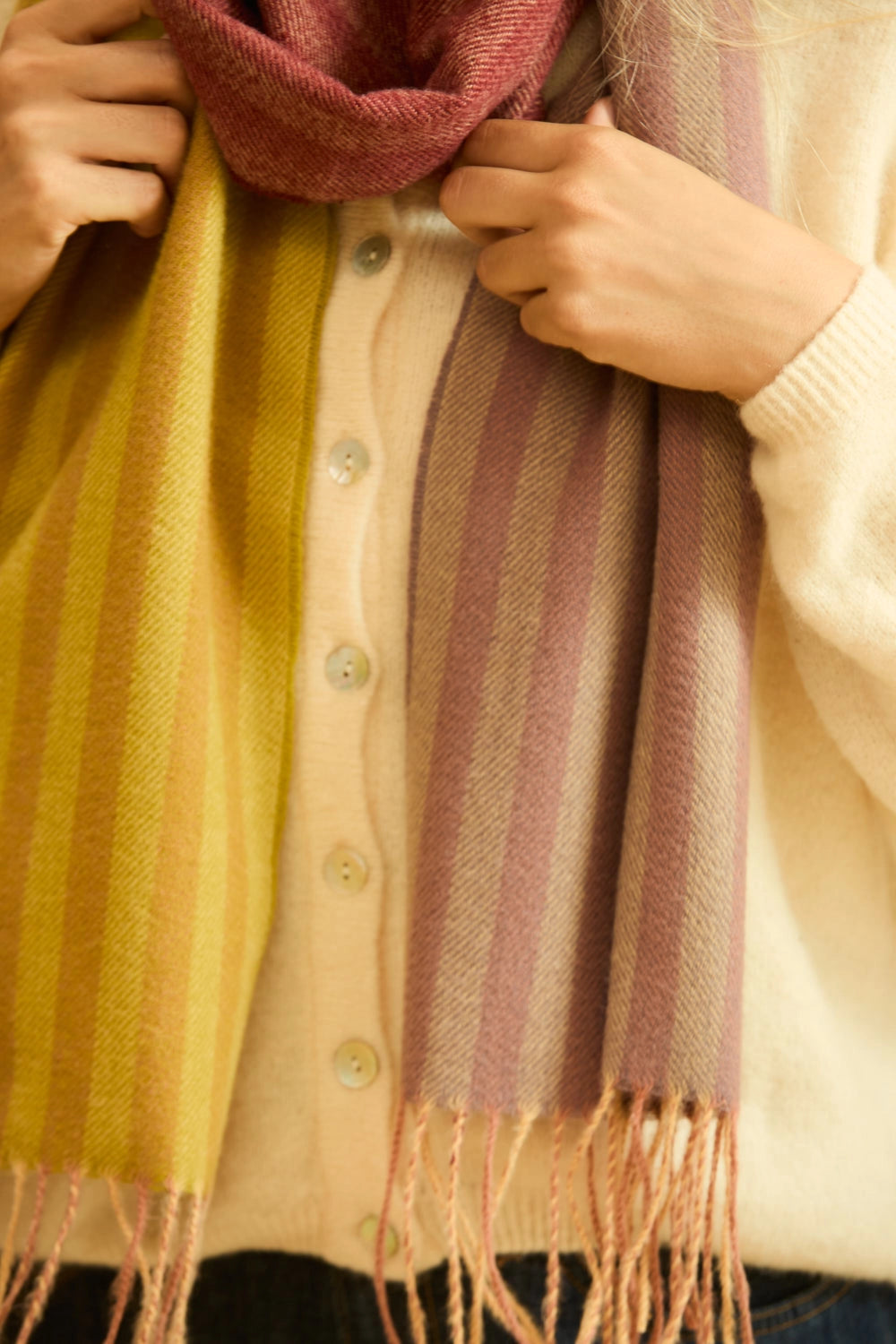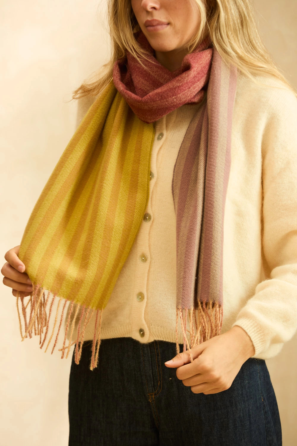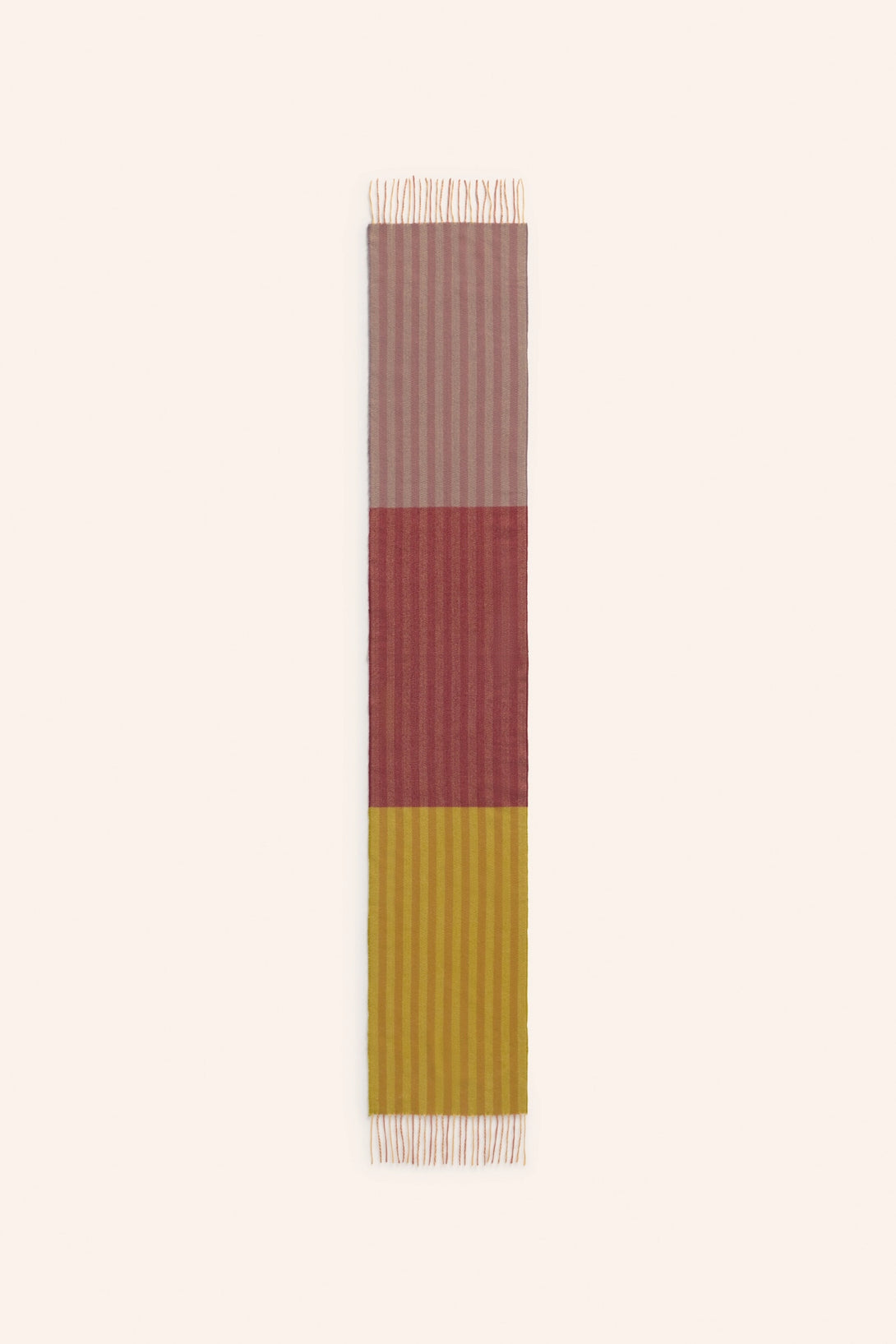 Bufanda muy suave a rayas multicolor. Acabado en flecos.
