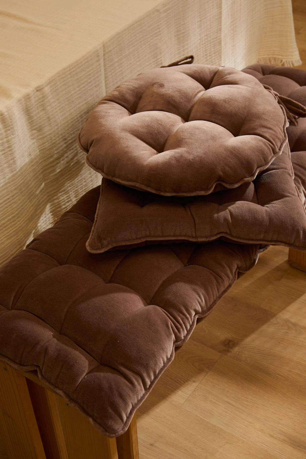 Cojín de banco de terciopelo marrón Velour