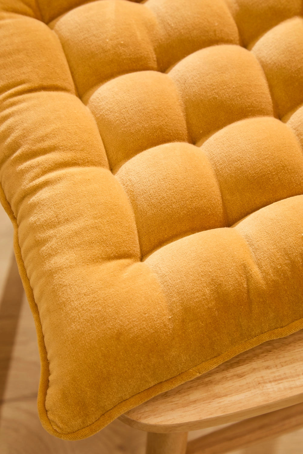 Cojín de silla cuadrado de terciopelo mostaza Velour