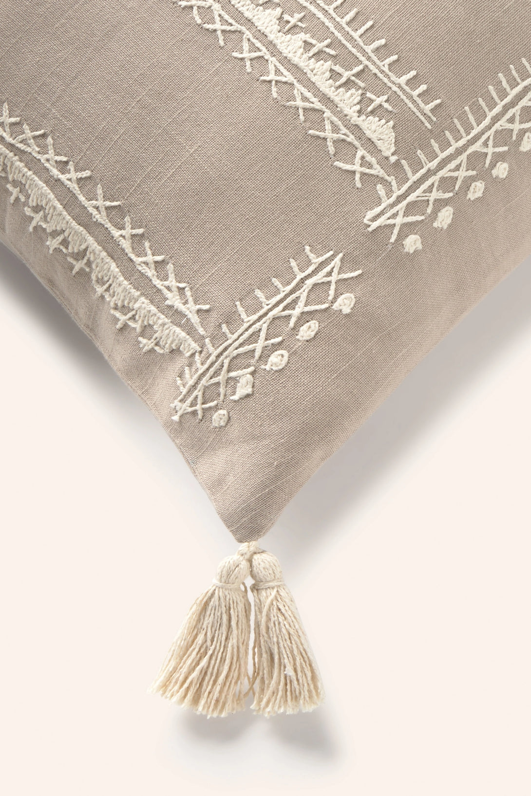 Funda de cojín cuadrada con bordado en tonos piedra Traste