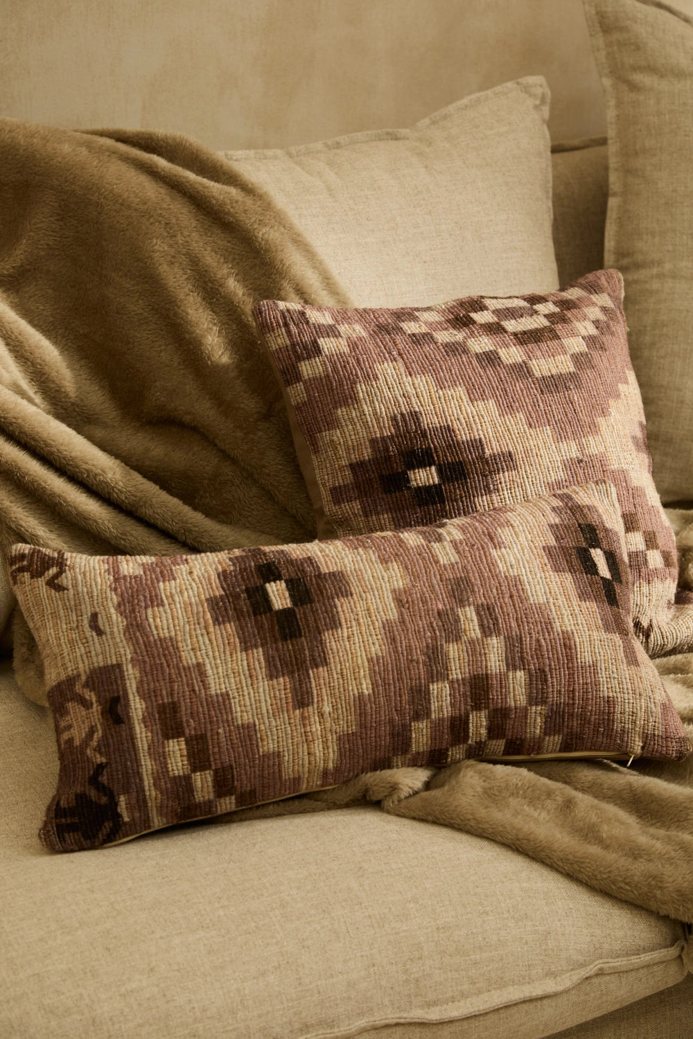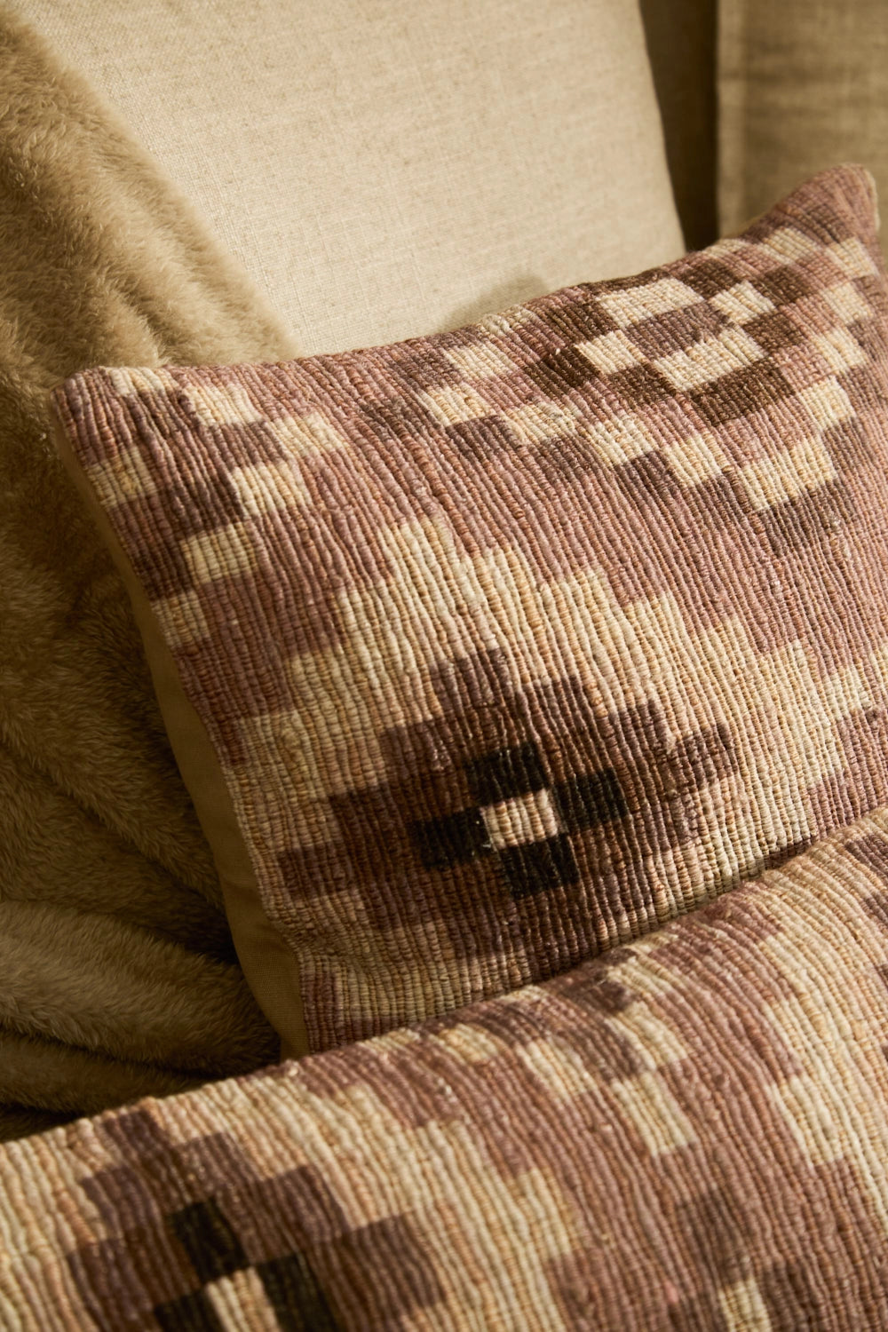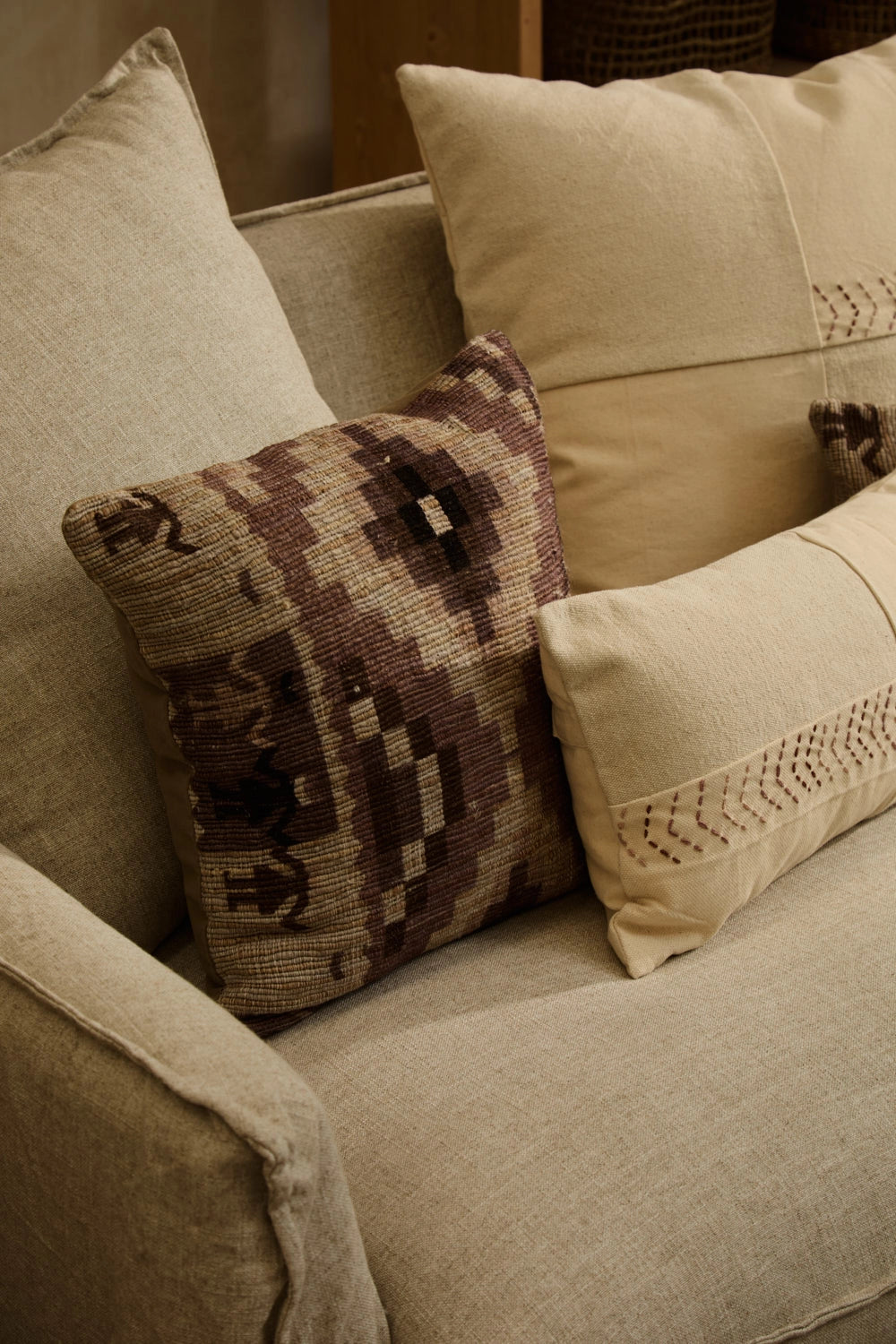 Funda de cojín cuadrada de algodón trenzado en tonos piedra con print étnico. Trasero en canvas a tono. Cierre con cremallera oculta en inferior. Cada cojín puede presentar ligeras variaciones de color debido al proceso de teñido y a la visualización en pantalla.