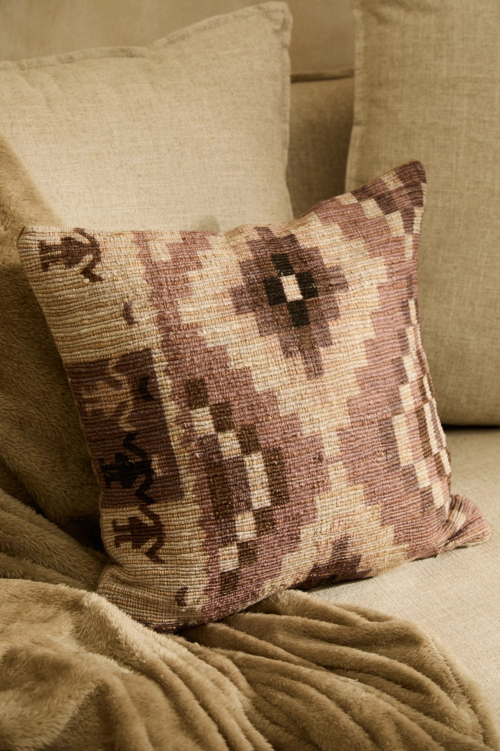 Funda de cojín cuadrada de algodón trenzado en tonos piedra Zulu