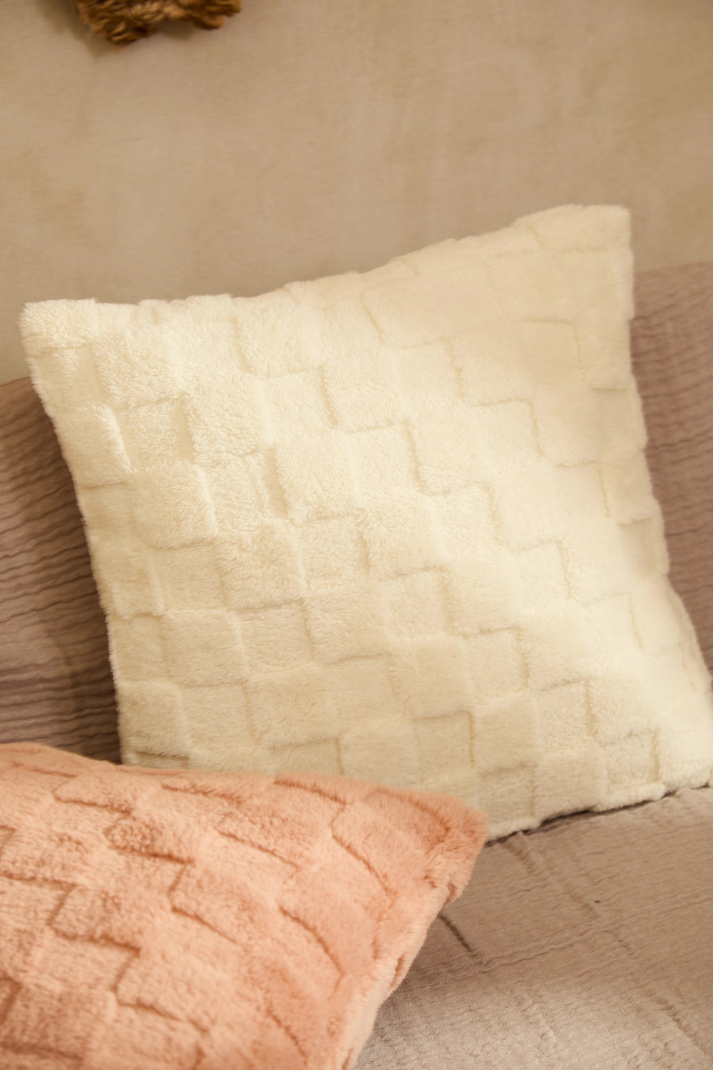 Funda de cojín de pelito crudo Damero