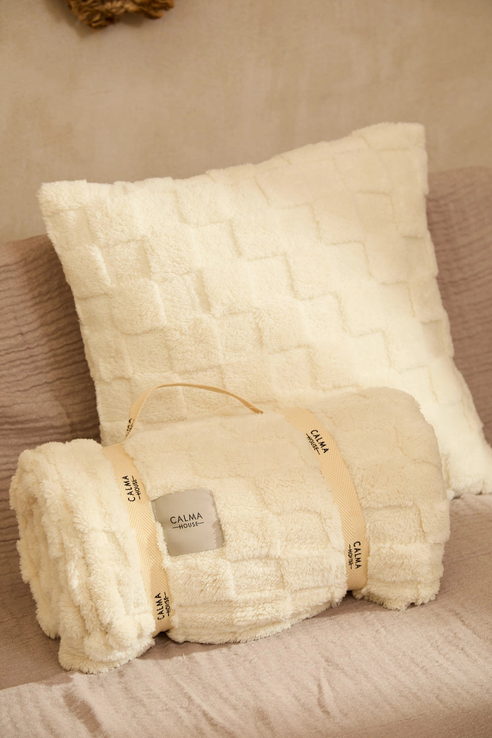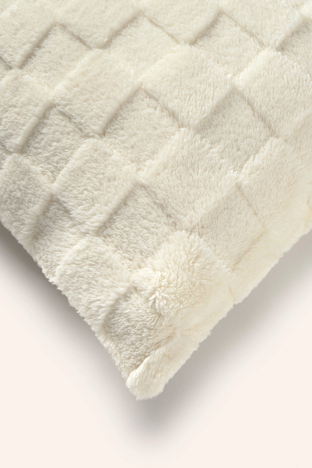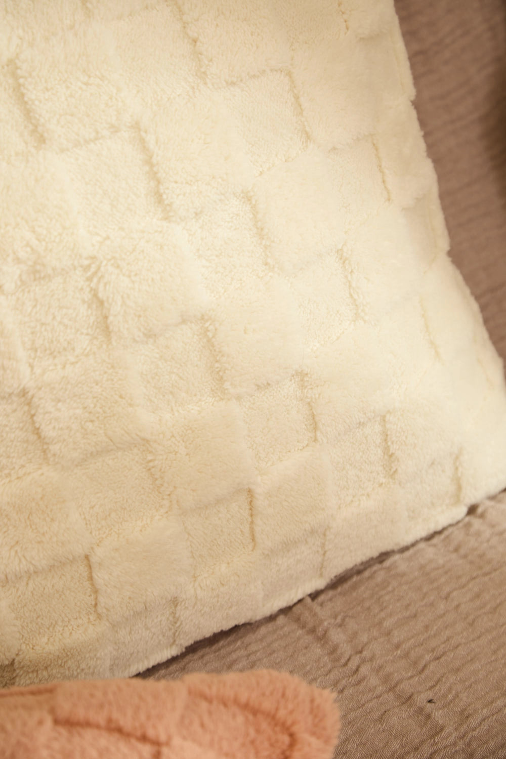 Funda de cojín de pelito crudo texturada con motivo geométrico. Idéntica frontal al reverso, salvo etiqueta. Cremallera oculta en inferior. Cada cojín puede presentar ligeras variaciones de color debido al proceso de teñido y a la visualización en pantalla.