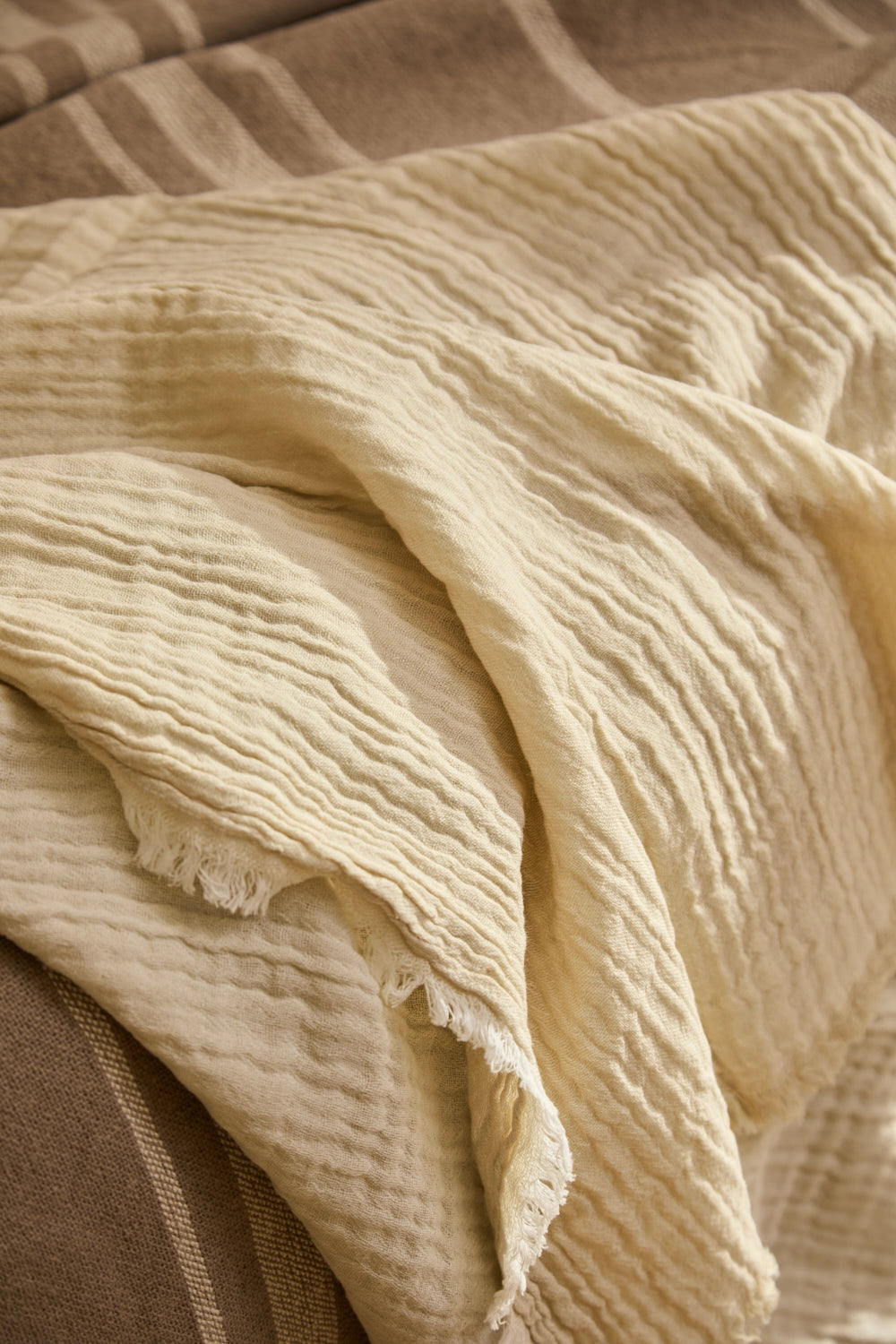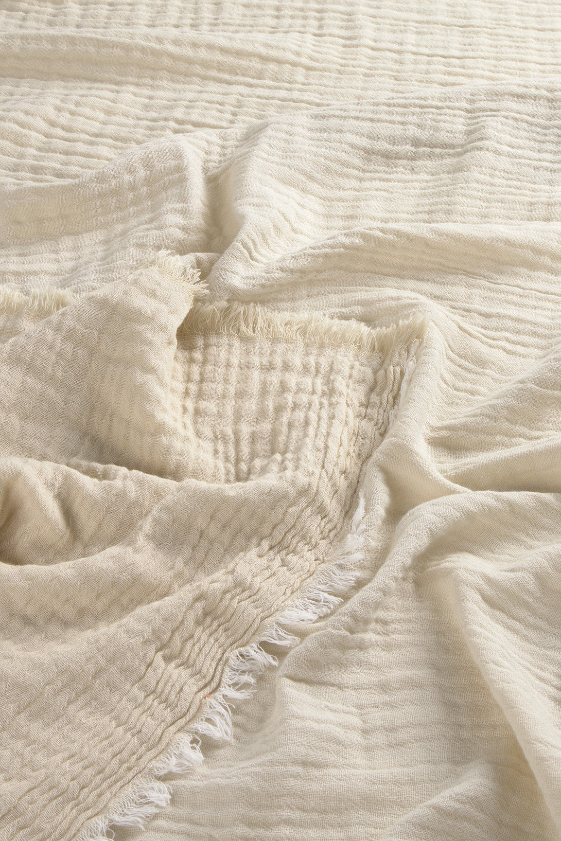 Plaid de muselina de algodón cruda Layer. Acabado en flecos.